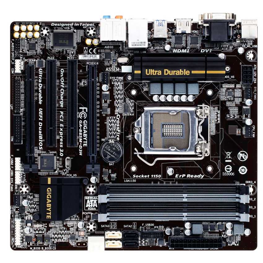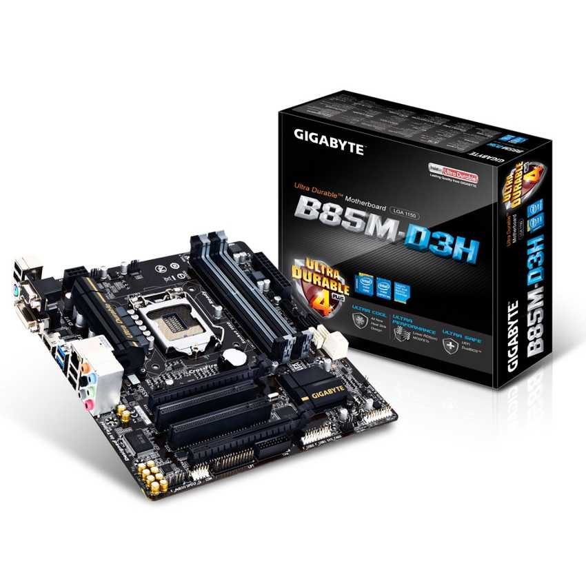 Descripción Gigabyte GA-B85M-D3H. tipos de memoria compatibles: DDR3-SDRAM, Tipo de ranuras de memoria: DIMM, Soporte de canales de memoria: Dual. Familia de procesador: Intel, Procesador compatible: Celeron, Core i3, Core i5, Core i7, Pentium, Socket de procesador: Socket H3 (LGA 1150). Interfaces de unidad de disco duro soportadas: SATA, Serial ATA II, Serial ATA III. Versión HDMI: 1.4a. Componente para: PC, Familia de componentes de tarjeta madre: Intel, Circuito integrado de tarjeta madre: Intel B85