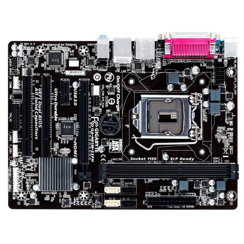 Descripción Gigabyte GA-H81M-S2PH. tipos de memoria compatibles: DDR3-SDRAM, Tipo de ranuras de memoria: DIMM, Soporte de canales de memoria: Dual. Familia de procesador: Intel, Procesador compatible: Celeron, Core i3, Core i5, Core i7, Pentium, Socket de procesador: Socket H3 (LGA 1150). Interfaces de unidad de disco duro soportadas: Serial ATA II, Serial ATA III. Versión HDMI: 1.4a. Tipo de interfaz ethernet: Gigabit