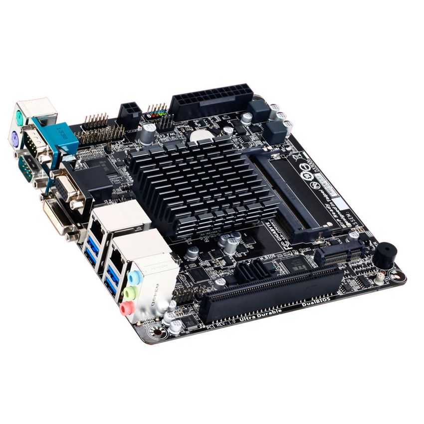 DescripciónGigabyte GA-J1900N-D3V (rev. 1.0). tipos de memoria compatibles: DDR3-SDRAM, Tipo de ranuras de memoria: SO-DIMM, Soporte de canales de memoria: Dual. Familia de procesador: Intel, Procesador compatible: Celeron, Procesador incorporado: J1900. Interfaces de unidad de disco duro soportadas: Serial ATA II. Tipo de interfaz ethernet: Gigabit. Componente para: PC, Tarjeta madre, factor de forma: Mini iTX, Canales de salida de audio: 7.1Especificacionestipos de memoria compatibles: DDR3-SDRAMTipo de ranuras de memoria: SO-DIMMSoporte de canales de memoria: DualNo ECC: SiVelocidades de reloj de memoria soportadas: 1333 MHzMemoria interna máxima: 8 GBRanuras de memoria: 2Familia de procesador: IntelProcesador compatible: CeleronProcesador incorporado: J1900USB 2.0, conectores: 1Interfaces de unidad de disco duro soportadas: Serial ATA IINúmero de conectores SATA: 2S/PDIF, conector de salida: SiConector de ventilador CPU: SiConector de potencia ATX (24 pines): SiConector de instrusión a chasis: SiNúmero de conectores a ventilador de chasis: 2Conector de audio en panel frontal: SiConectores de poder (4 pin) periferales (Molex): 1Número de conectores SATA 2: 2Conector paralelo: SiCantidad de puertos USB 3.0: 4Ethernet LAN (RJ-45) cantidad de puertos: 2Puerto serial: 2Puerto de ratón PS/2: 2Headphone outputs: 1Micrófono, jack de entrada: SiCantidad de puertos VGA (D-Sub): 1Cantidad de puertos DVI-D: 1Ethernet: SiTipo de interfaz ethernet: GigabitComponente para: PCTarjeta madre, factor de forma: Mini iTXCanales de salida de audio: 7,1Sistema de audio: Realtek ALC887Monitoreo de la salud de PC: CPU, Ventilador, Power supply, TemperaturaSistema operativo Windows soportado: Windows 8 Enterprise x64, Windows 8 Pro x64, Windows 8 x64, Windows 8.1, Windows 8.1 Enterprise, Windows 8.1 Enterprise x64, Windows 8.1 Pro, Windows 8.1 Pro x64, Windows 8.1 x64Soporte para proceso paralelo: NoAdaptador gráfico: HD GraphicsGraphics chipset: IntelMáxima resolución: 2560 x 1600 PixelesRanuras PCI: 1Entradas Mini PCI Express: 1Tipos de BIOS: UEFI AMIBIOS, tamaño de memoria: 128 MBVersión ACPI: 2.0aJumper Clear CMOS: SiAncho: 17 cmProfundidad: 17 cmSoftware incluido: Norton Internet Security, Intel Smart Connect TechnologyFuente de hoja de datos: