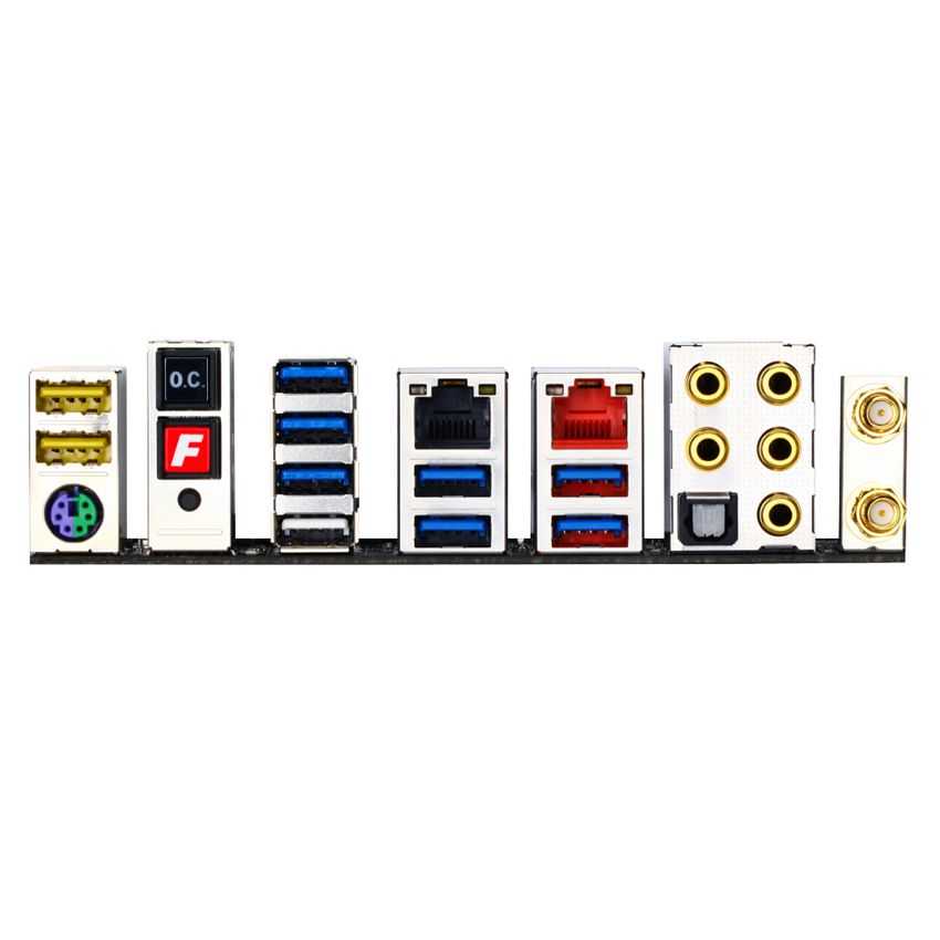 Especificaciones tipos de memoria compatibles: DDR4-SDRAM Tipo de ranuras de memoria: DIMM Soporte de canales de memoria: Quad No ECC: Si Velocidades de reloj de memoria soportadas: 2133, 2400, 2666, 2800, 3000 MHz Memoria interna máxima: 64 GB Ranuras de memoria: 8 Familia de procesador: Intel Procesador compatible: Core i7, Core i7 Extreme Edition Socket de procesador: LGA 2011-v3 USB 2.0, conectores: 2 Conectores USB 3.0: 2 Interfaces de unidad de disco duro soportadas: SATA, Serial ATA II, Serial ATA III Número de conectores SATA: 10 Conector de ventilador CPU: Si Conector de potencia ATX (24 pines): Si Conector de audio en panel frontal: Si Número de conectores SATA III: 10 Cantidad de puertos USB 2.0: 2 Cantidad de puertos USB 3.0: 8 Ethernet LAN (RJ-45) cantidad de puertos: 2 Puerto de ratón PS/2: 2 Micrófono, jack de entrada: Si Puerto de salida S/PDIF: Si Ethernet: Si Wifi: Si Controlador LAN: Intel I218V Tipo de interfaz ethernet: Gigabit Bluetooth: Si Wi-Fi estándars: 802.11a, 802.11ac, 802.11b, 802.11g, 802.11n Versión de Bluetooth: 4.0 Componente para: PC Familia de componentes de tarjeta madre: Intel Circuito integrado de tarjeta madre: Intel X99 Tarjeta madre, factor de forma: ATX extendida Canales de salida de audio: 5.1 Niveles RAID: 0, 1, 5, 10 Sistema de audio: Creative Sound Core 3D Soporte para proceso paralelo: 2-Way CrossFireX, 2-Way SLI, 3-Way CrossFireX, 3-Way SLI, 4-Way CrossFireX, 4-Way SLI Ranuras x1 PCI Express: 3 Ranuras x16 PCI Express: 4 Tipos de BIOS: UEFI Versión ACPI: 5.0 BIOS interruptor de botón: Si Botón para regresar a BIOS: Si Botón de limpieza CMOS: Si Ancho: 30,5 cm Profundidad: 25,9 cm