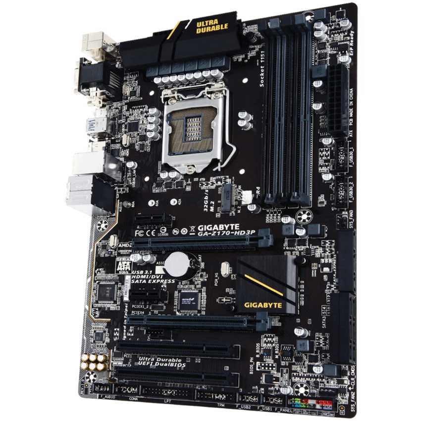 Descripción Gigabyte GA-Z170-HD3P (rev. 1.0). tipos de memoria compatibles: DDR4-SDRAM, Tipo de ranuras de memoria: DIMM, Canales de memoria: Dual. Familia de procesador: Intel, Procesador compatible: Celeron, Core i3, Core i5, Core i7, Pentium, Socket de procesador: LGA1151. Interfaces de unidad de disco duro soportadas: M.2, Serial ATA III. Versión HDMI: 1.4. Tipo de interfaz ethernet: Gigabit Ethernet