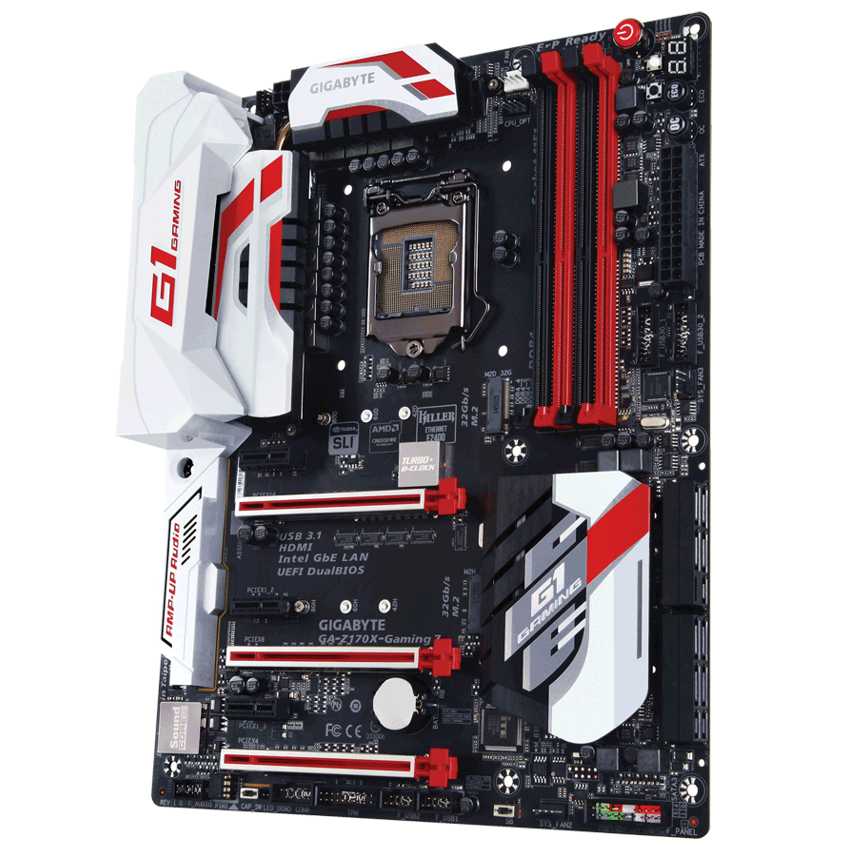 DescripciónGigabyte GA-Z170X-Gaming 7-EU. tipos de memoria compatibles: DDR4-SDRAM, Tipo de ranuras de memoria: DIMM, Canales de memoria: Dual. Familia de procesador: Intel, Procesador compatible: Celeron, Core i3, Core i5, Core i7, Pentium, Socket de procesador: LGA1151. Interfaces de unidad de disco duro soportadas: M.2, Serial ATA III. Versión HDMI: 2.0, Versión de DisplayPort: 1.2. Tipo de interfaz ethernet: Rápido, GigabitEspecificacionestipos de memoria compatibles: DDR4-SDRAMTipo de ranuras de memoria: DIMMCanales de memoria: DualNo ECC: SiVelocidades de reloj de memoria soportadas: 3866,3666,2133,2400,2666,2800,3000,3200,3300,3333,3400,3466,3600,3733 MHzMemoria interna máxima: 64 GBFamilia de procesador: IntelProcesador compatible: Celeron, Core i3, Core i5, Core i7, PentiumSocket de procesador: LGA1151Máx.número de procesador SMP: 1Procesador incorporado: USB 2.0, conectores: 2USB 3.0 (3.1 Gen 1) connectors: 2Interfaces de unidad de disco duro soportadas: M.2, Serial ATA IIIConector de ventilador CPU: SiConector de potencia ATX (24 pines): SiConector de audio en panel frontal: SiConector TPM: SiNúmero de conectores SATA III: 8Cabecera de puerto serie: 1Puerto serial via cabezal interno: SiNúmero de ranuras M.2 (M): 2Número de conectores SATA Express: 3USB 3.0 (3.1 Gen 1) Type-A ports quantity: 5USB 3.1 (3.1 Gen 2) Type-A ports quantity: 2Ethernet LAN (RJ-45) cantidad de puertos: 2Puerto de ratón PS/2: 1Salidas para auriculares: 1Micrófono, jack de entrada: SiPuerto de salida S/PDIF: SiNúmero de puertos HDMI: 1Cantidad de DisplayPorts: 1Versión HDMI: 2.0Versión de DisplayPort: 1.2Ethernet: SiTipo de interfaz ethernet: Rápido, GigabitComponente para: PCFamilia de componentes de tarjeta madre: IntelCircuito integrado de tarjeta madre: Intel Z170Tarjeta madre, factor de forma: ATXCanales de salida de audio: 5.1Niveles RAID: 0, 1, 5, 10Monitoreo de la salud de PC: CPU, Ventilador, Power supply, Temperatura, VoltageIntel Extreme Memory Profile (XMP): SiSistema operativo Windows soportado: Windows 10 Education, Windows 10 Education x64, Windows 10 Enterprise, Windows 10 Enterprise x64, Windows 10 Home, Windows 10 Home x64, Windows 10 Pro, Windows 10 Pro x64, Windows 7 Enterprise, Windows 7 Enterprise x64, Windows 7 Home Basic, Windows 7 Home Basic x64, Windows 7 Home Premium, Windows 7 Home Premium x64, Windows 7 Professional, Windows 7 Professional x64, Windows 7 Starter, Windows 7 Starter x64, Windows 7 Ultimate, Windows 7 Ultimate x64, Windows 8.1, Windows 8.1 Enterprise x64, Windows 8.1 Pro, Windows 8.1 Pro x64, Windows 8.1 x64Soporte para proceso paralelo: 2-Way CrossFireX, 2-Way SLI, 3-Way CrossFireXAdaptador gráfico: Soporte de gráficos discretos: SiNúmero de pantallas soportadas: 2PCI Express x1 (Gen 3.x) ranuras: 3PCI Express x16 Gen (3.x) ranuras: 3Tipos de BIOS: UEFI AMIVersión ACPI: 5.0Jumper Clear CMOS: SiBIOS interruptor de botón: SiBotón de limpieza CMOS: SiIntel Tecnología Smart Response: SiAncho: 30,5 cmProfundidad: 24,4 cmCables incluidos: SATAControladores incluidos: SiGuía de instalación rápida: Si