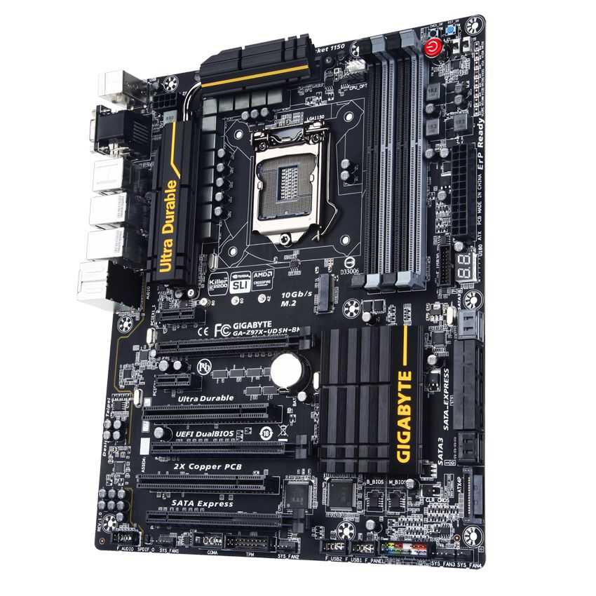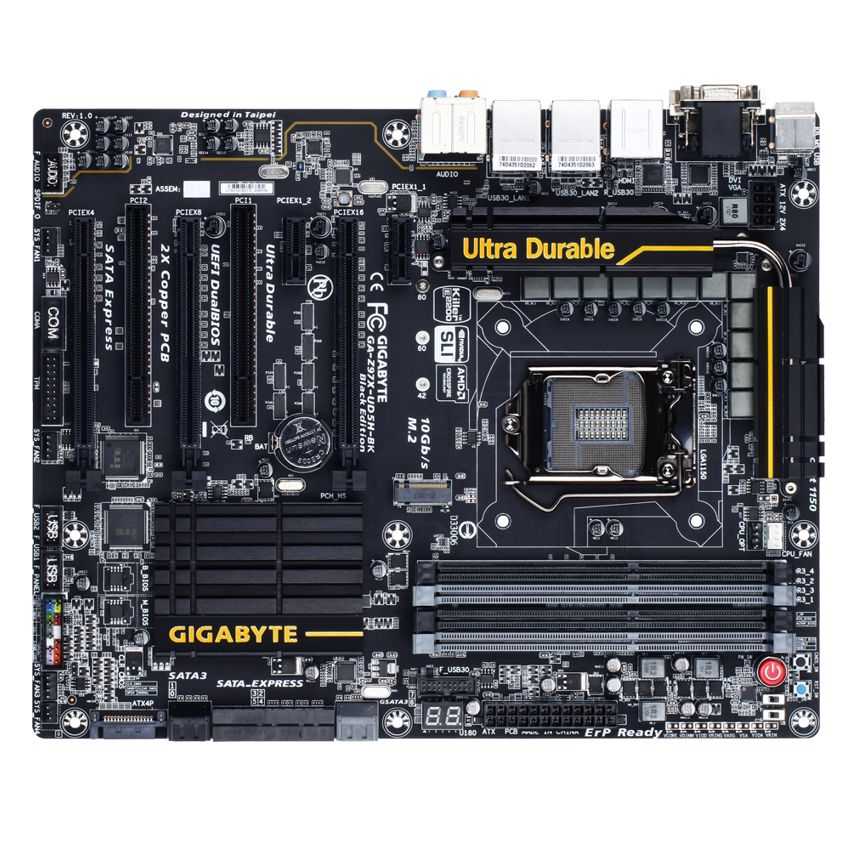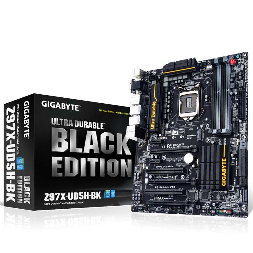Descripción Gigabyte GA-Z97X-UD5H-BK. tipos de memoria compatibles: DDR3-SDRAM, Tipo de ranuras de memoria: DIMM, Canales de memoria: Dual. Familia de procesador: Intel, Procesador compatible: Celeron, Core i3, Core i5, Core i7, Pentium, Socket de procesador: Socket H3 (LGA 1150). Interfaces de unidad de disco duro soportadas: SATA. Versión HDMI: 1.4a. Componente para: PC, Familia de componentes de tarjeta madre: Intel, Circuito integrado de tarjeta madre: Intel Z97