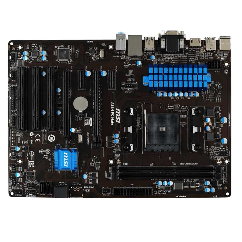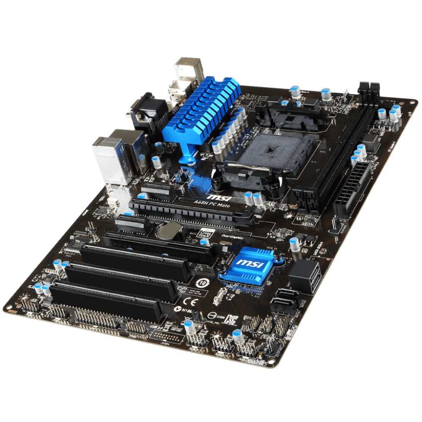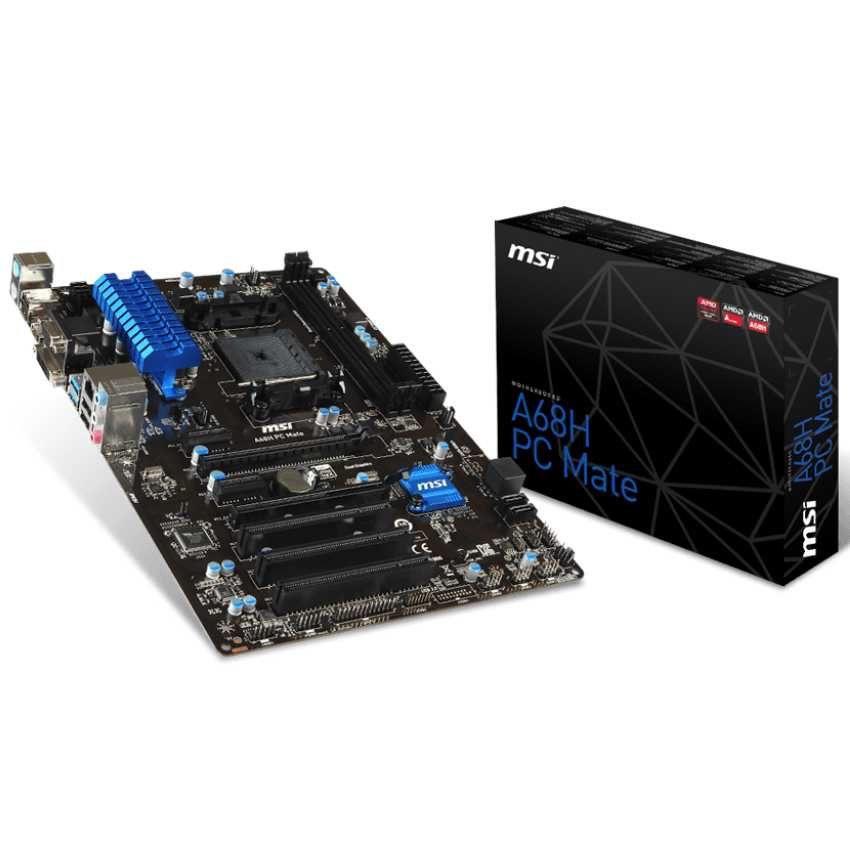 Descripción MSI A68H PC Mate. tipos de memoria compatibles: DDR3-SDRAM, Tipo de ranuras de memoria: DIMM, Canales de memoria: Dual. Familia de procesador: AMD, Procesador compatible: AMD A, Athlon, Socket de procesador: Socket FM2+. Interfaces de unidad de disco duro soportadas: Serial ATA III. Controlador LAN: Realtek RTL8111E. Componente para: PC, Familia de componentes de tarjeta madre: AMD, Circuito integrado de tarjeta madre: AMD A68H