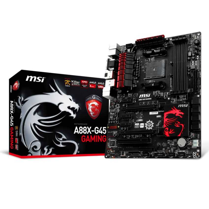 Descripción MSI A88X-G45 GAMING. tipos de memoria compatibles: DDR3-SDRAM, Tipo de ranuras de memoria: DIMM, Canales de memoria: Quad. Familia de procesador: AMD, Procesador compatible: AMD A, Athlon, Socket de procesador: Socket FM2+. Interfaces de unidad de disco duro soportadas: Serial ATA III. Controlador LAN: Bigfoot Killer E2205, Tipo de interfaz ethernet: Gigabit. Componente para: PC, Familia de componentes de tarjeta madre: AMD, Circuito integrado de tarjeta madre: AMD A88X