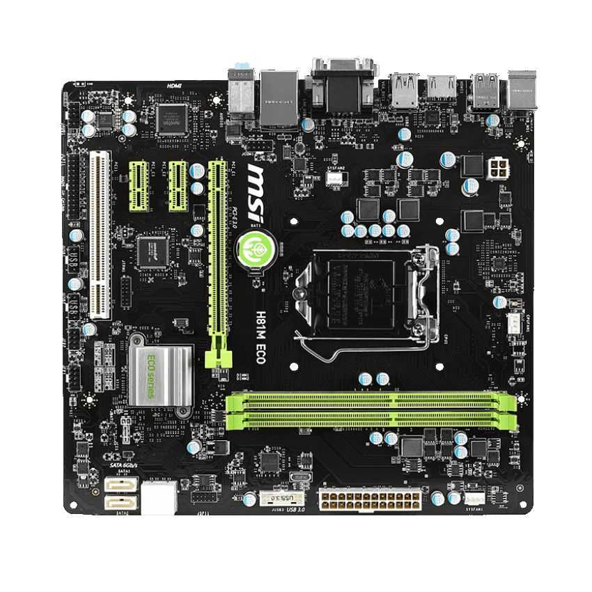 Especificaciones Características: ? TÜV CERTIFIED o Todas las placas base MSI ECO de la serie han pasado numerosas pruebas TÜV y finalmente recibió los certificados TÜV para la eficiencia energética y la estabilidad a largo plazo. Desde hace mucho tiempo TÜV es una empresa independiente muy reconocida en el sector y otorga al diseño ECO exclusivo de MSI como el más eficiente y destaca un aumento de la esperanza de vida para las placas base MSI de la serie ECO. Disfrute de un verdadero ahorro de energía durante mucho tiempo con las placas base MSI ECO Series. ? Hacer más con menos o Ahorra un 40% de energía, 100% rendimiento y 100% compatible. Todo esto son los factores que definen perfectamente a la Serie ECO ? PCB optimizado o MSI utiliza técnicas únicas en el hardware y el software y han diseñado la Serie ECO ¡para utilizar menos energía que una bombilla! Ahorre hasta un 40%. ? Eco Centro Pro o 3 Presest de ahorro de energía o Con un solo click active el ahorro máximo o Controla el apagado y encendido de los ventiladores o Controla el apagado y encendido de las luces o Controla el apagado y encendido de los periféricos o Guardado de la configuración de la BIOS ? Botón ECO o Eficiencia a su control; pulsando el botón ECO se activa al inmediatamente.Facilidad de uso con un botón en hardware, BIOS y software. Diseñado para escoger la configuración que desees ? Totalmente compatible o Soporta todas las CPUs como cualquier otra placa base o Optimizado para Intel S y T de energía CPUs eficientes o Soporta toda la memoria DDR3 Especificaciones: ? Factor de forma M-ATX ? CPU (Max Soportado) i7 ? FSB / Hyper Transport Bus 100MHz ? Chipset Intel ® H81 Express ? Memoria DDR3 DDR3 1066/1333/1600 MHz ? Canal de Memoria Dual ? 2 x DIMM Slots ? Max Memoria 16GB ? 1 x PCI-Ex16 ? PCI-E Gen Gen3 (16) ? 2 x PCI-EX1 ? 1 x PCI ? 2 x Puertos USB 3.0 (frontal) ? 2 x SATAIII ? 4 x Puertos USB 2.0 (frontal) ? 2 x SATAII ? 1 x LAN 10/100/1000 ? 1 x TPM ? 2 x Puertos USB 3.0 (Posterior) ? 4 x Puertos USB 2.0 (Posterior) ? 3 x Puerto Audio (Posterior) ? 1 x VGA ? 1 x HDMI ? 1 x DVI ? Memoria Compartida Max VGA (MB) 1024 ? DirectX DX11