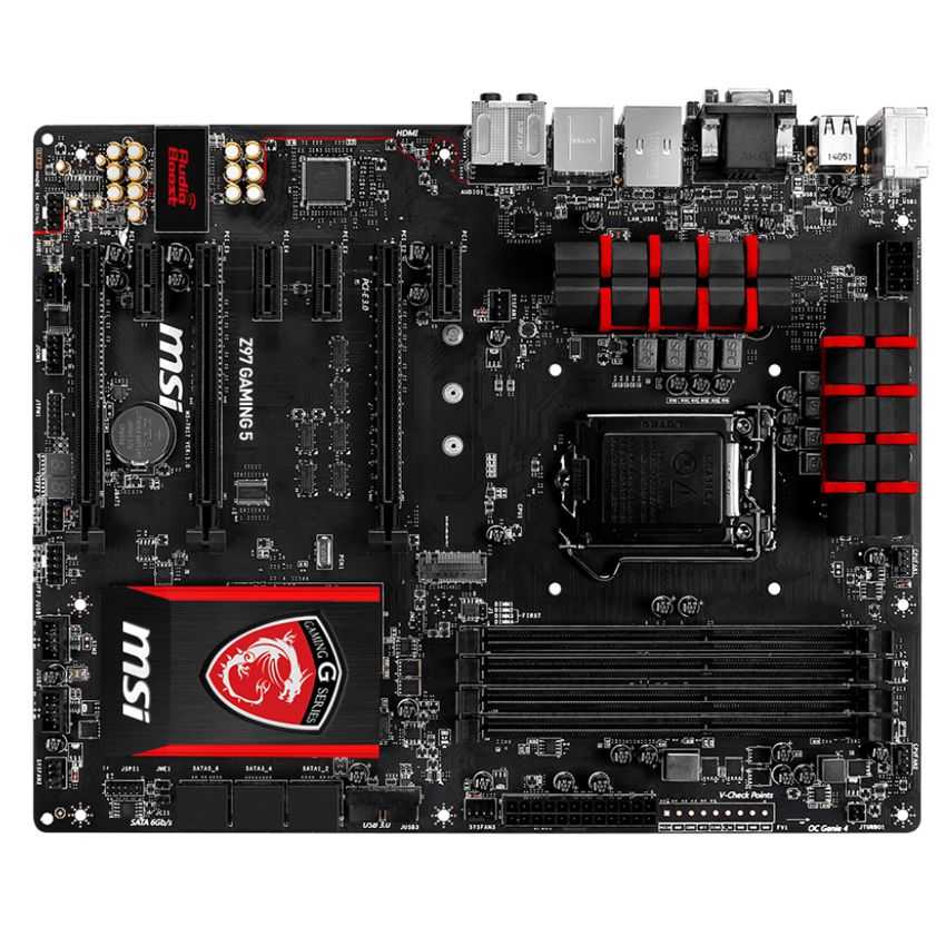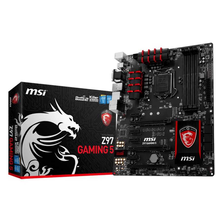 Descripción MSI Z97 GAMING 5. tipos de memoria compatibles: DDR3-SDRAM, Tipo de ranuras de memoria: DIMM, Canales de memoria: Dual. Familia de procesador: Intel, Procesador compatible: Celeron, Pentium, Socket de procesador: Socket H3 (LGA 1150). Interfaces de unidad de disco duro soportadas: SATA. Tipo de interfaz ethernet: Gigabit. Componente para: PC, Familia de componentes de tarjeta madre: Intel, Circuito integrado de tarjeta madre: Intel Z97