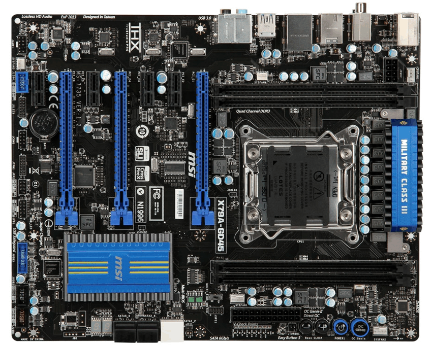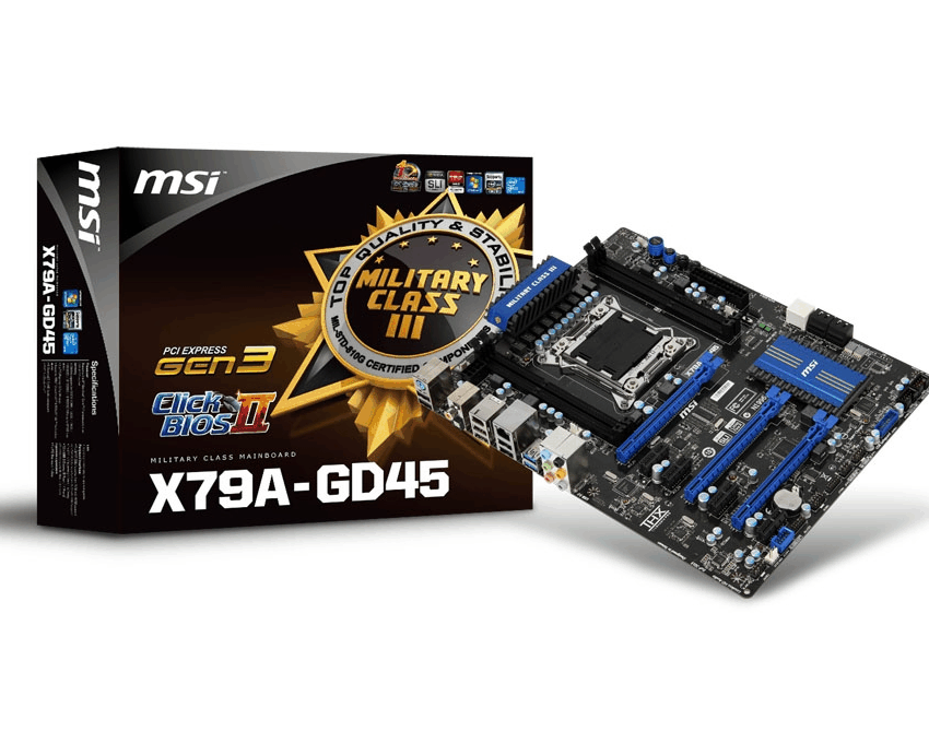 Msi Placa Base Intel X79a-Gd45, Intel 64GB Las tarjetas madre MSI mantienen su compromiso de producir productos estables y confiables introduciendo los componentes Military Class III. Además de utilizar Hi-c CAP, SFC, Capacitadores Sólidos, MSI incorpora DrMOS II, la nueva generación de DrMOS que ofrece doble protección térmica integrada para maximizar la duración de los componentes. Todos los componentes Military Class III pasaron la certificación MIL-STD-810G, lo que convierte a los componentes Military Class III en un sinónimo de máxima calidad y estabilidad superior.