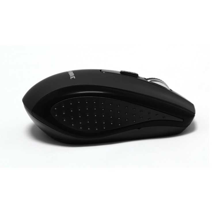 · Tecnología inalámbrica de 2.4 GHz · Cambio de DPIs en el instante · Manejo confortable con ambas manos · Suave tacto 'rubber' · Mini receptor USB · Distancia de operación: 9 m · Necesita de 2 pilas tipo AAA 1.5V (no incluidas) · Compatible con Windows y Mac