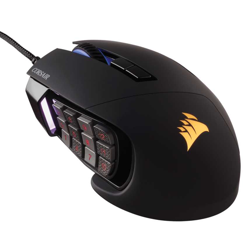 Descripción Corsair SCIMITAR RGB MOBA/MMO. Interfaz del dispositivo: USB, Utilizar con: Juego, Tecnología de detección de movimientos: Óptico. Color del producto: Negro, Factor de forma: mano derecha, País de origen: China. Longitud de cable: 1,8 m, Polling rate (min): 125 Hz, Polling rate (max): 1000 Hz. Fuente de energía: Cable. Ancho: 7,7 cm, Profundidad: 11,9 cm, Altura: 4,88 cm
