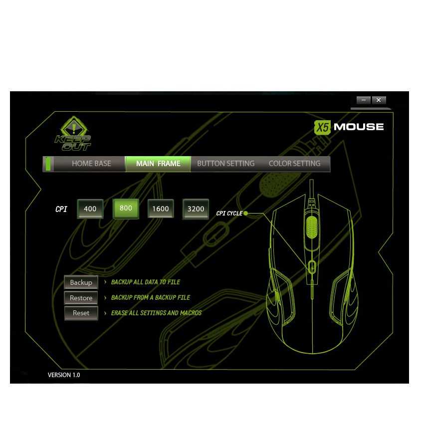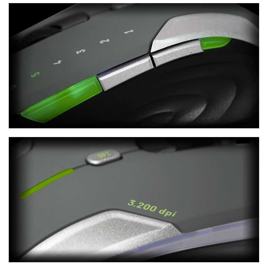 El X5 es un Gaming Mouse que se centra en las necesidades esenciales de los jugadores con un estilo normal de juego. Funciona con un sensor óptico de extrema calidad ajustable de 4 niveles de DPI, sus valores están comprendidos entre 400-3200DPI, puede ser fácilmente identificado por su indicador de la luz central. Con 6 Macro botones, los usuarios pueden guardar hasta 6 macros diferentes en cada uno de sus cinco perfiles. Esta información se almacena en la memoria interna del X5, que permite a los usuarios utilizar sus ajustes preferidos en diferentes equipos sin volver a instalar el software o reconfiguración. El X5 es ambidiestro y adecuado para todo tipo de los jugadores.