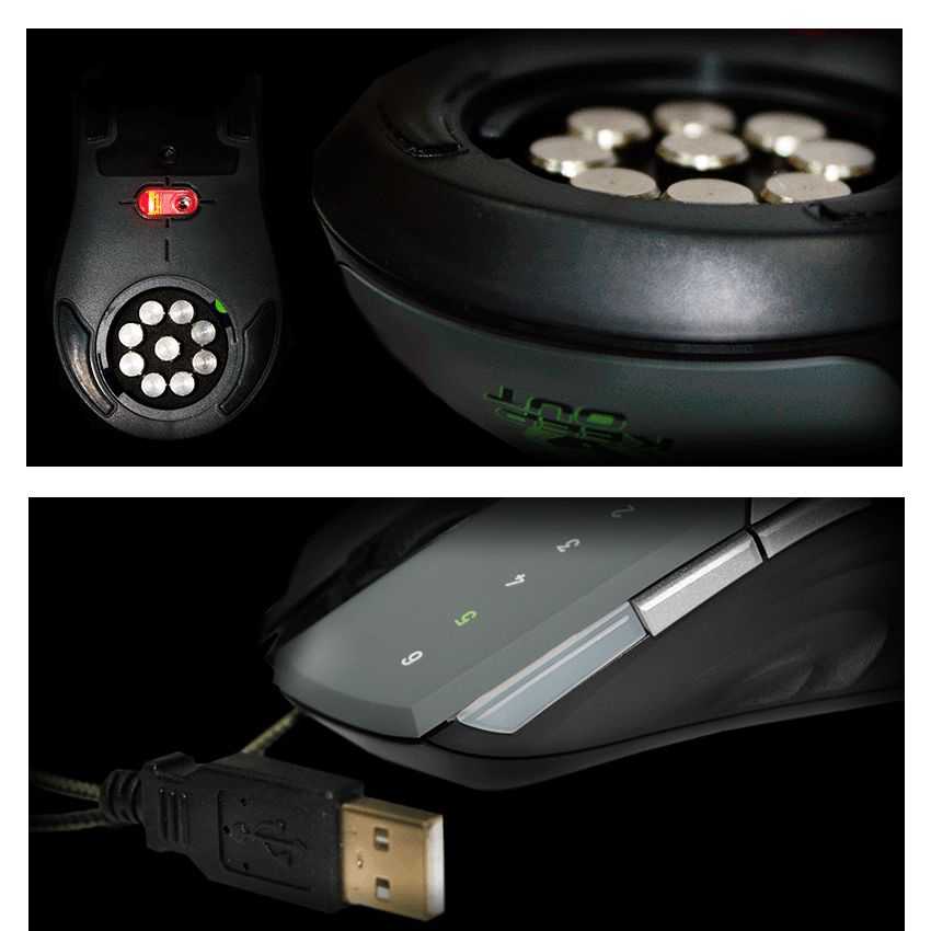 Especificaciones 64 KB de memoria en placa 4 niveles de ajuste de DPI 400/ 800/1600/3200dpi 6 botones programables - PR: 125/ 250 /500 Hz Velocidad: 68 pulgadas por segundo 9 pesos de 2.7 gramos ajustables Sensor Óptico: PAW3305DK Cable de nylon alta duración de 1,8 m Fotogramas por segundo: 3600fps Aceleración: 30 G