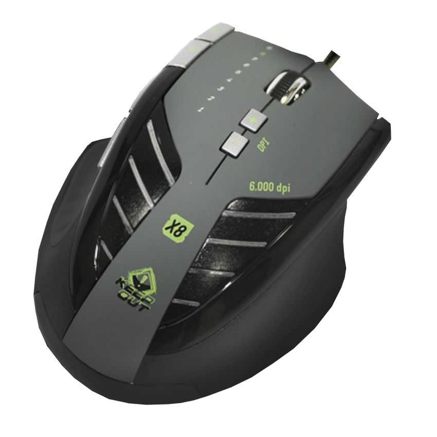 DISEÑADO PARA JUGADORES PROFESIONALES - Acabado en goma resistente y pensado para mil y una batallas. Su diseño es estético y ergonómico. - Dispone de 9 botones macro programables en cada uno de sus 5 perfiles y está concebido para los juegos más actuales. - Dispone de 7 niveles de DPI ajustables 800/1600/2000/2400/3200/5000/6000 DPI, que permiten personalizar la velocidad del X8.El motor del X6 es su sensor óptico AVAGO 9500, que te proporcionará todo el potencial necesario para triunfar en los mejores juegos del mercado.Dispone de 9 pesos de 2.8 gramos ajustables, con los que podrá personalizar la estabilidad y control del X8.Conector USB 2.0 con acabado en cobre para una mejor conectividad.Cable con revestimiento y protección en nylon con 1.8 metros de longitud que proporcionan seguridad y ergonomía.Su software está totalmente equipado para configuraciones básicas y avanzadas, de facil uso y configuración.