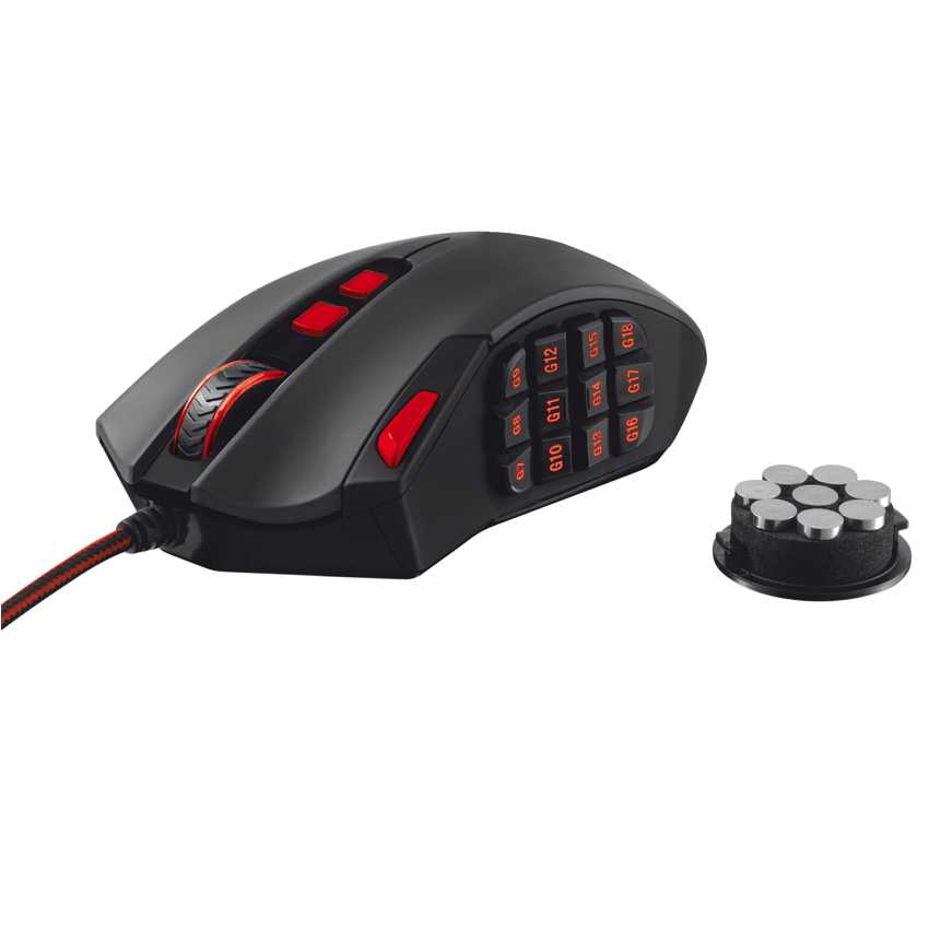 Descripción 18 botones programables. Software avanzado para programar botones y macros. Memoria integrada para guardar 5 perfiles para juegos. Pesos ajustables. Color de iluminación LED ajustable. DPI ajustable hasta 16400. Cable trenzado.