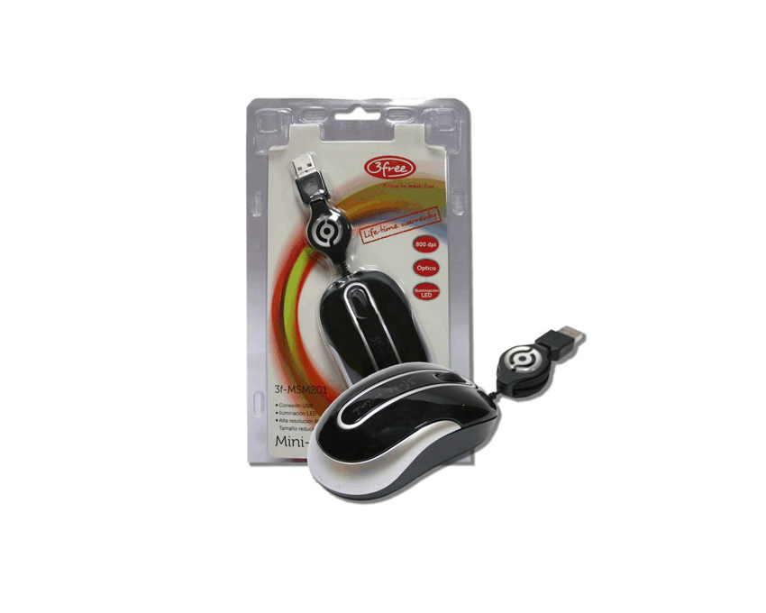 Raton Mini Optico USB 3FREE Retractil 3F-MSM201/BW