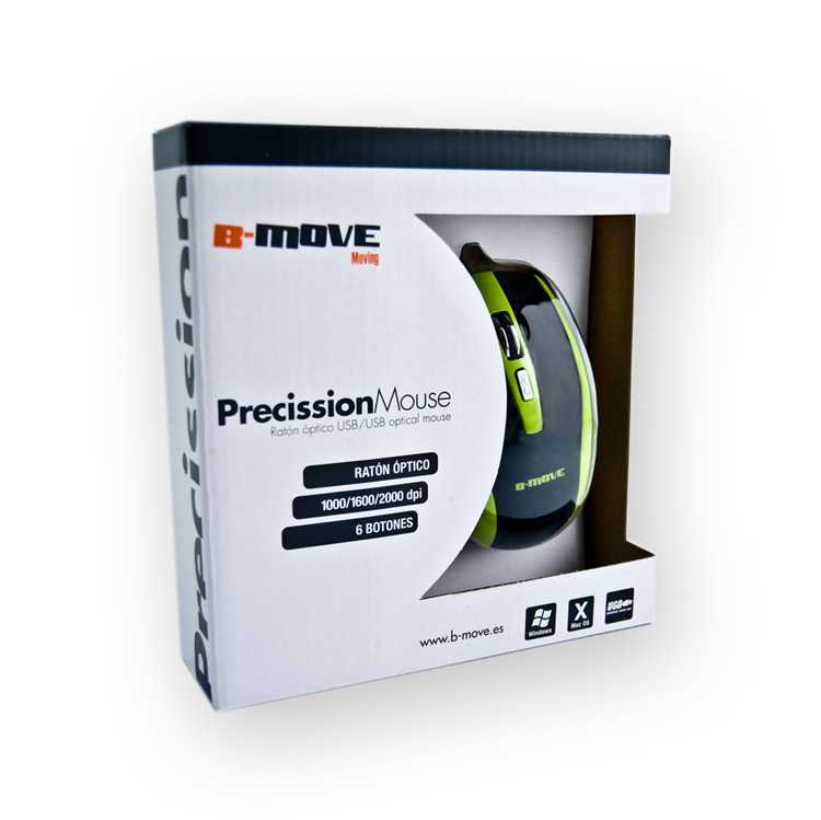 Ratón Óptico B-MOVE Precission Verde 1000/1600/2000 dpi