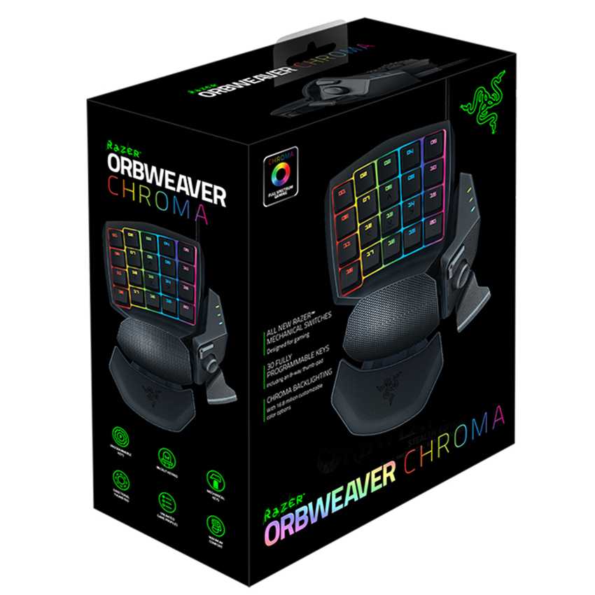 Descripción Razer Orbweaver. Interfaz del dispositivo: USB, Uso recomendado: Juego, Utilizar con: PC/server. Color del producto: Negro. Espacio mínimo del disco duro: 200 MB. Dimensiones de teclado (Ancho x Profundidad x Altura): 154 x 202 x 55 mm, Peso del teclado: 395 g. Número de productos incluidos: 1 pieza(s)