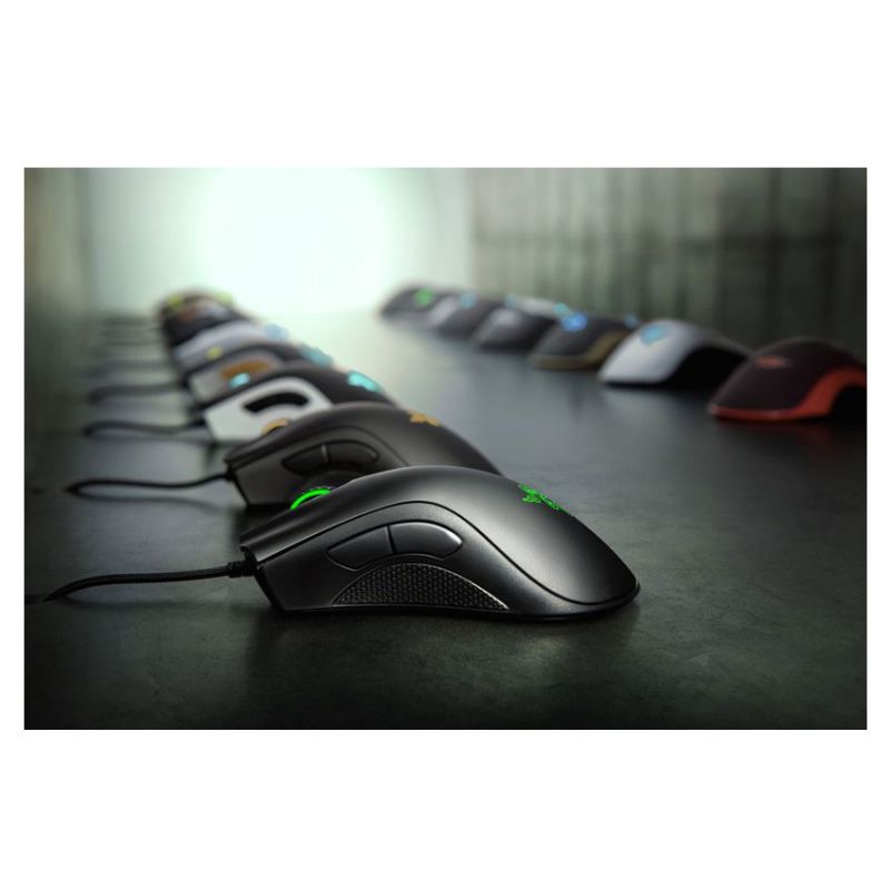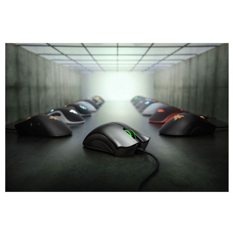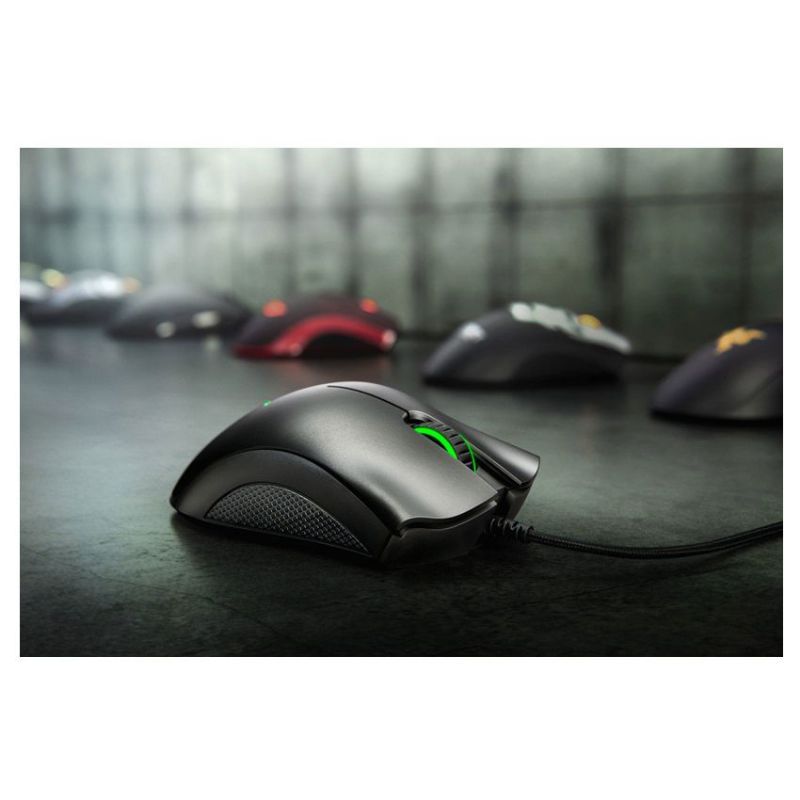 Descripción Razer DeathAdder Essential. Factor de forma: mano derecha. Tecnología de detección de movimientos: Óptico, Interfaz del dispositivo: USB tipo A, Resolución de movimiento: 6400 DPI, Tipo de botones: Botones presionados, Cantidad de botones: 5, Tipo de desplazamiento: Rueda, Aceleración (máx.): 30 G. Iluminación de color: Verde. Fuente de energía: Cable. Color del producto: Negro