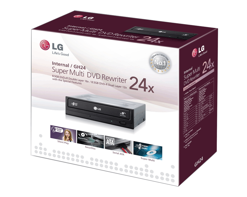 Designed for storage needs that demand consistency, the GH24NS90 read and write in CD, DVD+R, DVD+RW, DVD RAM formats giving you the option to choose the media best suited for each task.
