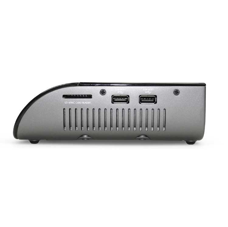 Ofrece una resolución de hasta 1080p a través de su salida HDMI garantizando una calidad de imagen excelente en la reproducción de sus archivos en alta definición. Cuenta con avanzadas funciones de grabación y de programación de grabaciones. Permite reproducir archivos desde el disco duro (no incluido) o a través de sus dos puertos USB y de su lector de tarjetas SD y MMC.