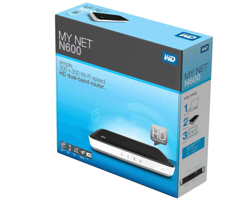 My Net N600 - HD Dual-Band Router, IEEE 802.11 n/g/b/a, Fast EthernetTransmisión inteligente del entretenimiento en alta definición con FasTrack. La tecnología exclusiva FasTrack ofrece una transmisión uniforme de alta definición y con gran calidad en todos los dispositivos conectados. Da prioridad automáticamente hasta a 21 servicios de entretenimiento para que el entretenimiento sea lo primero.La velocidad que sigue su ritmo. Con velocidades de banda dual de hasta 300 Mbps en las bandas de 2,4 y 5 GHz, My Net N600 ofrece altas velocidades Wi-Fi para todos los dispositivos conectados.*Más ancho de banda, menos interferencias. Doble sus anchos de banda de 2,4 y 5 GHz que trabajan simultáneamente para aumentar la tasa de transmisión y reducir las interferencias. Más ancho de banda para más dispositivos conectados.Estará transmitiendo en el acto. La configuración simplificada mediante CD de WD o mediante navegador está diseñada para permitirle funcionar en unos pocos pasos. Utilice el sencillo CD de configuración o configúrelo de forma inalámbrica desde el iPad u otro dispositivo conectado. La intuitiva interfaz de usuario está diseñada para pantallas táctiles, permitiendo la configuración instantánea desde un teléfono inteligente o una tableta.Le damos cobertura. La tecnología de amplificador de amplio margen reduce la interferencia y las antenas adicionales amplían la señal inalámbrica para llegar a más habitaciones de la casa. Transmita sus películas, programas, juegos, vídeos y música a todos los portátiles, tabletas y teléfonos inteligentes de la casa.Usted tiene el control. My Net Dashboard facilita la personalización, supervisión o cambio de la configuración de la red. Sencilla vista unificada de los controles de acceso a contenidos, la seguridad de Internet, el nombre y contraseña de red, así como de la configuración de impresora y escáner y de las unidades de almacenamiento conectadas.Controles de contenidos y seguridad de Internet. Utilice los controles de contenidos disponibles para limitar el tipo de sitios web que los niños pueden ver, establezca límites de acceso y de horas para el uso de Internet y configure la seguridad para prevenir ataques de software dañino o software espía.4 puertos Ethernet de alta velocidad Con cuatro puertos Ethernet de alta velocidad puede ampliar fácilmente la red con otros dispositivos conectados.Puerto USB. El cómodo puerto USB permite añadir de un modo sencillo a la red dispositivos de almacenamiento externo, impresoras compartidas, escáneres y otros dispositivos USB.Conecte fácilmente y amplíe su red. Con UPnP, My Net N600 hace que sea fácil descubrir y configurar automáticamente otros dispositivos de la red para poder disfrutar del mejor entretenimiento.Tenga la red preparada y funcionando. La herramienta de diagnósticos de red que se incluye supervisa su red por usted. Muestra cuántos dispositivos están en su red, analiza continuamente los aspectos relacionados con la conectividad de red y ayuda a su corrección en el caso de fallos, para que pueda volver a funcionar lo más rápidamente posible.Comparta su red con invitados. Configure su propia zona inalámbrica segura en casa para que sus invitados puedan acceder de forma inalámbrica a la red. La protección mediante contraseña le permite controlar el nivel de acceso a solo la navegación inalámbrica por Internet o al acceso ampliado a los invitados de los archivos de red compartidos o a impresoras inalámbricas compartidas.Añada My Book Live para crear su propia nube personal. Conecte el dispositivo de almacenamiento personal en la nube My Book Live o My Book Live Duo de WD a su Router de banda dual en alta definición My Net para crear su propia solución de nube personal dentro de su red doméstica.Configuración por medio de botón (WPS). Un solo botón puede conectar fácilmente nuevos dispositivos a su red inalámbrica. Es tan fácil como sincronizar el teléfono móvil con un dispositivo Bluetooth. En segundos podrá ampliar su red para incluir ordenadores, teléfonos inteligentes, tabletas y otros dispositivos inalámbricos activados por UPnP.QoS avanzada (WMM) Además del estándar QoS avanzada que establece la prioridad de los dispositivos, los Routers My Net disponen de la tecnología exclusiva FasTrack Plus que establece la prioridad inteligente en tiempo real de películas de Internet, programas, juegos y videochat para obtener una transmisión del entretenimiento en alta definición con la mayor uniformidad posible.Pv6 habilitado. Tenga preparada la red para el futuro con la última tecnología de protocolos de Internet.WPA/WPA2, servidor de seguridad SPI. Protegemos su red inalámbrica con WPA/WPA2 y el servidor de seguridad SPI. Solo se pasan los datos que se desee, se bloquea el acceso de hackers y se protege la red.Amplificadores de antena. Integrados en el elegante diseño de los Routers hay varios amplificadores de antena que ayudan a reforzar el alcance del Router para que pueda disponer de una excelente cobertura y velocidad en prácticamente cualquier tamaño de casa.