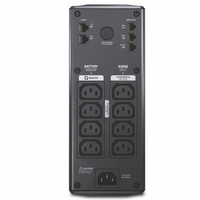 Back-UPS Pro Características y Ventajas Protección Salidas protegidas frente a subidas de tensión y batería Proporcione respaldo y protección a su hardware y sus datos durante los cortes del suministro eléctrico, las subidas de tensión y los picos de tensión. Protección de la línea de datos contra sobretensiones Protección de sobretensiones en la línea de datos Solo salidas de subidas de tensión Proteja el sistema electrónico secundario contra las subidas de tensión y los picos de tensión sin reducir el suministro de batería que mantiene en funcionamiento los sistemas electrónicos básicos durante los cortes de suministro.Disponibilidad Función de gestión energética Función de ahorro de energía que desconecta automáticamente los dispositivos periféricos cuando un dispositivo maestro, normalmente un PC, entra en modo de hibernación o se desconecta. El suministro eléctrico a los dispositivos periféricos se restaura de forma inmediata cuando el dispositivo maestro se vuelve a activar o se conecta. Regulación automática de la tensión (AVR) Ofrece más disponibilidad al corregir las condiciones de baja y alta tensión sin utilizar la carga de las baterías. Modo verde Modo de funcionamiento pendiente de patente que deriva los componentes eléctricos no utilizados en buenas condiciones para conseguir una elevada eficiencia de funcionamiento sin sacrificar la protección. Puntos de transferencia de tensión personalizables Ajuste los puntos de tensión (ampliando o estrechando el intervalo) en los que su SAI pasa a modo de batería para maximizar la vida útil de la batería y proteger los sistemas electrónicos sensibles. Sensibilidad a tensión personalizable Alterne entre los puntos de transferencia de tensión predeterminados en función de la calidad del suministro (sensibilidad alta, media o baja) para maximizar la vida útil de la batería y proteger los sistemas electrónicos sensibles. Gestión inteligente de la batería Aumenta el rendimiento, la duración y la fiabilidad de las baterías mediante la carga inteligente y de precisión. Capacidad de arranque en frío Proporciona una batería temporal cuando la energía se ha agotado. Notificación de fallo de batería Presenta notificación precoz de errores de las baterías permitiendo el mantenimiento preventivo a tiempo Comprobación automática La autocomprobación periódica de la batería le garantiza una detección precoz de la necesidad de reparar una batería. Tomas espaciadas del transformador Protege el equipo con transformadores de entrada sin bloquear el acceso a otros receptáculos. Facilidad de reparación y mantenimiento Interruptor de circuito reseteable Fácil recuperación de sobrecargas; no es necesario cambiar un fusible. Fácil sustitución de la batería Aumenta la disponibilidad del SAI gracias a la sustitución rápida y fácil de la batería.Capacidad de gestión Conexión USB Utilice su PC para obtener funciones adicionales de protección eléctrica y gestión para su SAI a través de un puerto USB. Pantalla LCD de estado Ofrece características clave de SAI de un vistazo. Numerosos indicadores de estado con gráficos de barras para datos de carga y batería. Alarmas sonoras El sistema le notificará los cambios que se produzcan en el estado del SAI y de la red eléctrica. Notificación de batería desconectada Avisa cuando una batería no puede ofrecer alimentación de reserva.Seguridad Aprobado por agencia de seguridad Garantiza la comprobación del producto y aprobación para funcionar de forma segura con las cargas conectadas y en el entorno concreto.