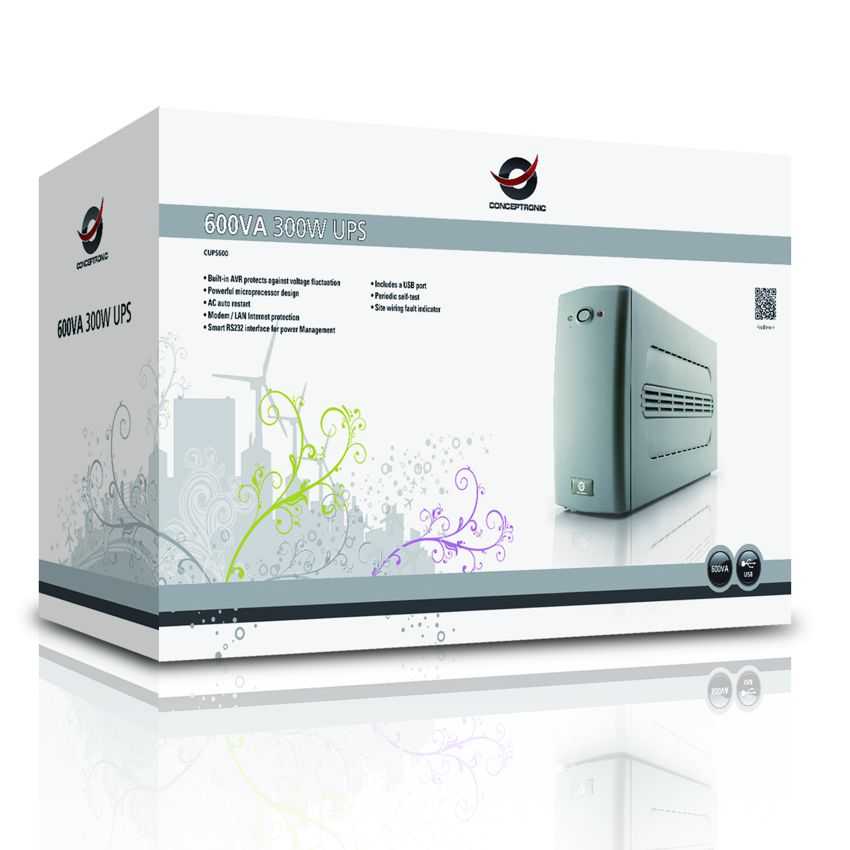 Conceptronic UPS 600VA proporciona batería de repuesto fiable y duradera para el hogar o la pequeña oficina.
