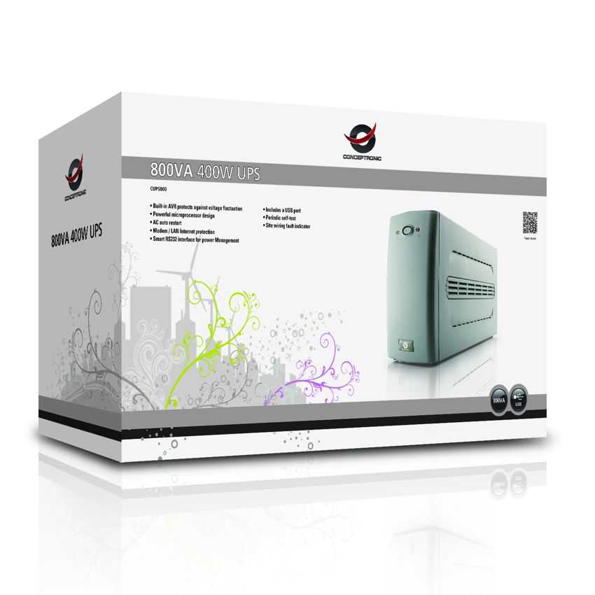 Conceptronic UPS 800VA proporciona batería de repuesto fiable y duradera para el hogar o la pequeña oficina.