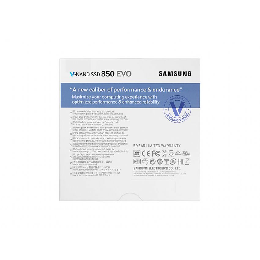 Resistencia garantizada. Las unidades SSD 850 EVO duplican el TBW* de la anterior generación 840 EVO**. Proporcionan un rendimiento constante mejorado de hasta el 30% a pesar de la degradación, demostrando ser una de las unidades SSD más fiables del mercado***. Cuentan con 5 años de garantía. *TBW: Bytes totales escritos. **TBW: 43 (840 EVO) > 75 (850 EVO 120 / 250 GB), 150 (850 EVO 500 / 1 TB). ***Rendimiento constante (250 GB): 3.300 IOPS (840 EVO) > 6.500 IOPS (850 EVO), Rendimiento medido tras un test de “escritura aleatoria” de 12 horas.