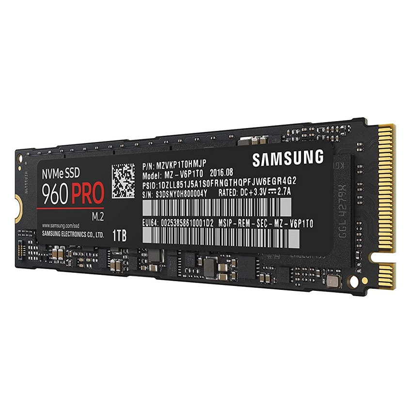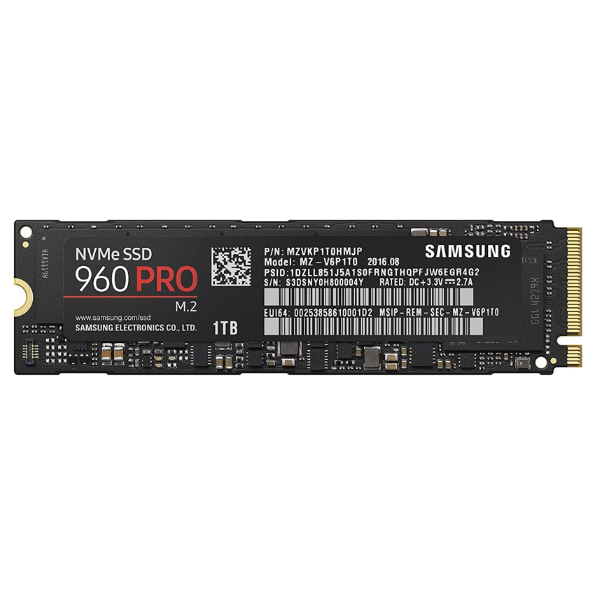 Descripción Samsung 960 PRO NVMe M.2 1TB. Disco de estado sólido, capacidad: 1000 GB, Interfaces de disco de estado sólido: PCI Express, Velocidad de lectura: 3500 MB/s. Factor de forma de disco SSD: M.2, Color del producto: Negro, Funciones de protección: Resistente a golpes. Consumo de energía (promedio): 1,2 W. Ancho: 80 mm, Profundidad: 22,1 mm, Altura: 2,3 mm