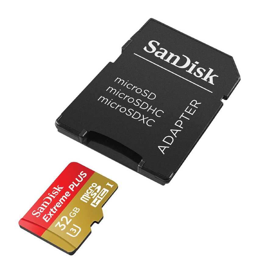 Descripción Sandisk Extreme 32GB. Capacidad: 32 GB, Tipo de tarjeta flash: MicroSDXC, Clase de memoria flash: Class 10. Color del producto: Oro, Rojo, Funciones de protección: Resistente a golpes, Resistente a la nieve, Temperature proof, Resistente al agua. Ancho: 1,5 cm, Profundidad: 1,1 cm, Altura: 1 mm. Adaptador de memoria incluido: SD