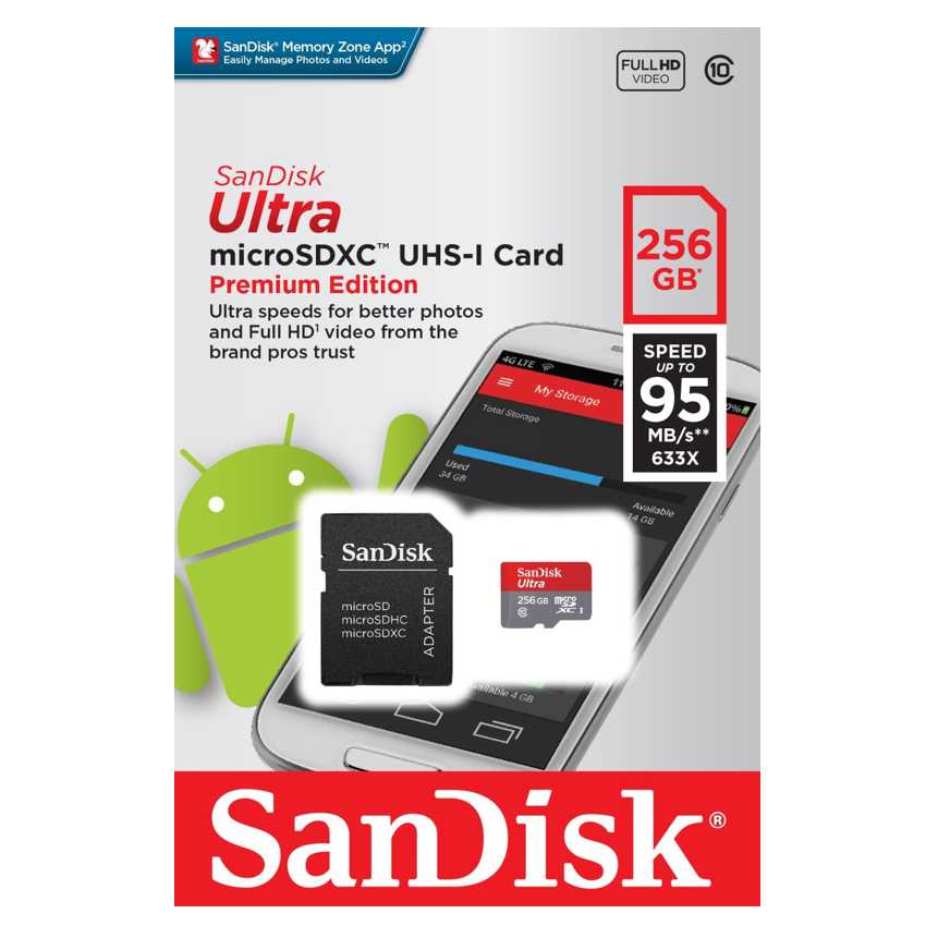 Descripción Sandisk SDSQUNI-256G-GN6MA. Capacidad: 256 GB, Tipo de tarjeta flash: MicroSDXC, Clase de memoria flash: Class 10. Color del producto: Gris, Rojo. Ancho: 15 cm, Profundidad: 10,9 cm, Altura: 10,2 cm