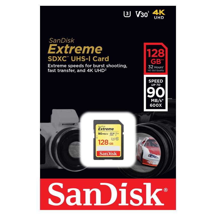 Descripción Sandisk Extreme, 128 GB. Capacidad: 128 GB, Tipo de tarjeta flash: SDXC, Clase de memoria flash: Class 10. Color del producto: Negro, Amarillo. Ancho: 35,8 mm, Profundidad: 42,7 mm, Altura: 3,56 mm. Ancho del paquete: 15,2 cm, Profundidad del paquete: 10,2 cm, Altura del paquete: 1,4 cm