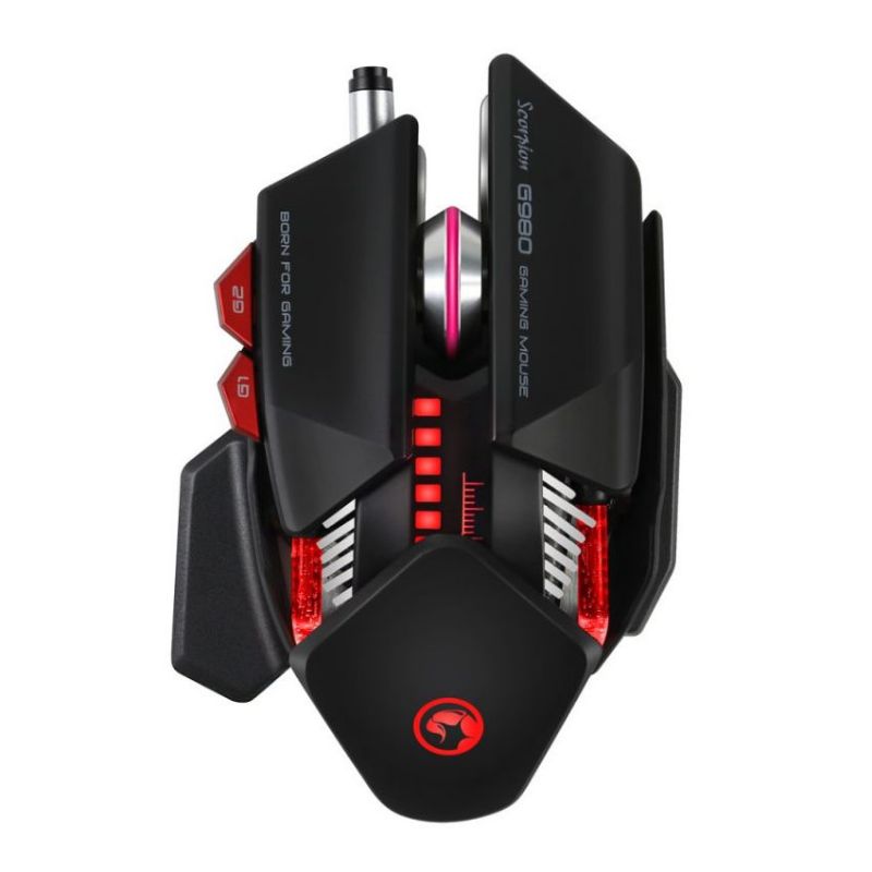 RATÓN GAMING G980 » 6 botones configurables » Chip PAN 3325 » Frecuencia de muestreo adaptable por software 250, 500, 1000 Hz » Luces LED RGB configurables » Incluye software para configurar la sensibilidad » Funciones macro, iluminación, DPI (en DVD) » Reposamuñecas adaptable por tornillo » Puerto USB. Cable Trenzado. » Longitud del cable de 1,80m » Tamaño: 146x88x38mm / Peso: 145g » Voltaje 5V / Corriente 200mA