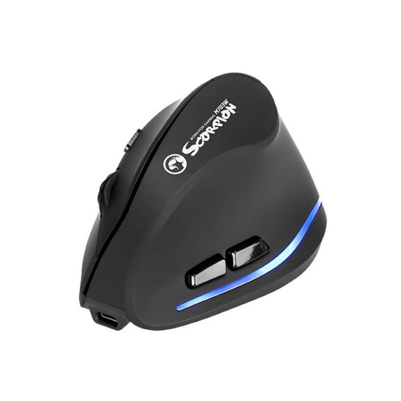 Descripción El ratón inalámbrico vertical MA-M703W de Scorpion es una buena manera de prevenir el síndrome del túnel carpiano. Está diseñado ergonómicamente para reducir la presión en la muñeca y permite al usuario no sentirse cansado después de una larga sesión con el ratón. Dispone de batería recargable con cable USB, que permite seguir usándolo mientras se carga.