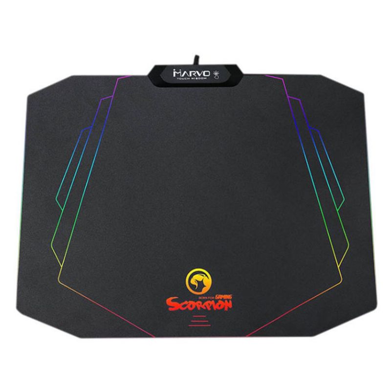 SUPERFICIE RÍGIDA CON ACABADO EN MICRO TEXTURA RETROILUMINACIÓN RGB + 7 COLORES CONTROL TÁCTIL CON 3 MODOS SELECCIONABLES GOMA ANTI DESLIZANTE EN LA BASE, PARA EVITAR DESPLAZAMIENTOS ALIMENTACIÓN USB, PLUG AND PLAY CABLE USB TRENZADO PARA MAYOR DURABILIDAD DIMENSIONES: 365 x 275 x 3 mm