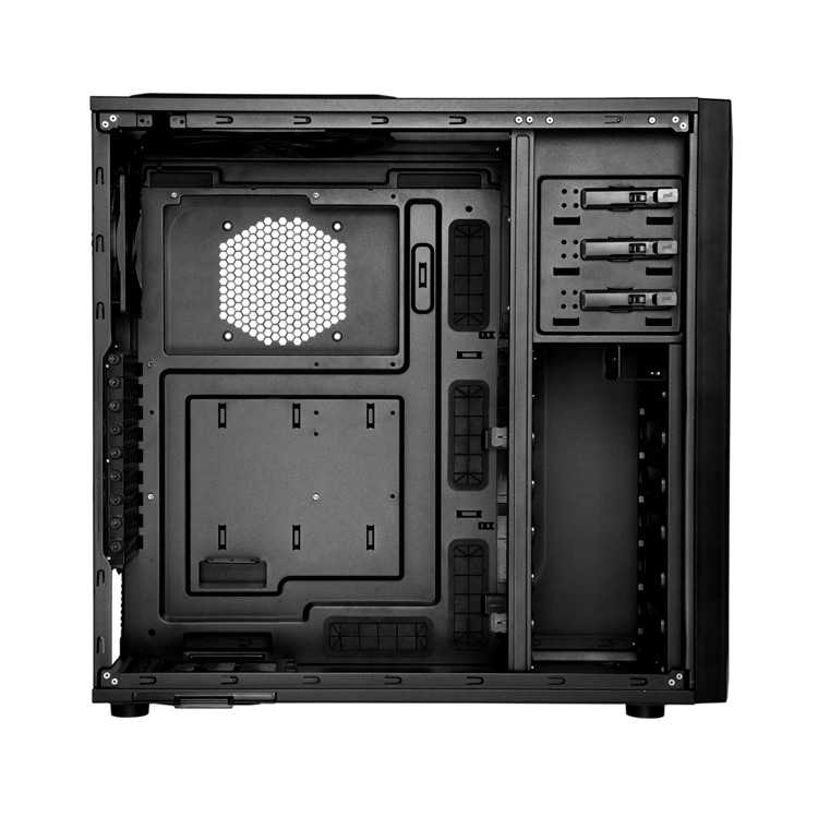 · Panel frontal con meta mesh para una mejora del flujo de aire · Filtros de aire lavables que reducen la acumulación de polvo dentro del sistema · Preparada para refrigeración líquida · Compatible con sistemas multi GPU · Soporte para la placa base con recorte para una fácil instalación de nuevos disipadores de CPU · Sistema para gestionar los cables en el interior · Permite conectar ventiladores con conectores de 3 pines a un único molex para así obtener una mejor gestión de los cables en el interior · Puertos E/S montados en la parte superior para facilitar el acceso · Ventana acrílica en el panel lateral · Interiores en color negro · Instalación de la fuente en la parte inferior