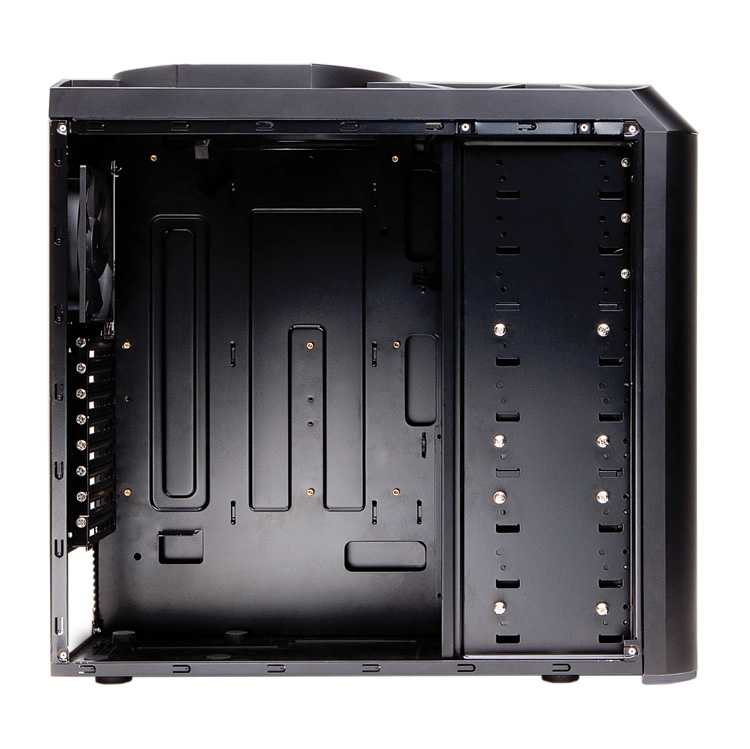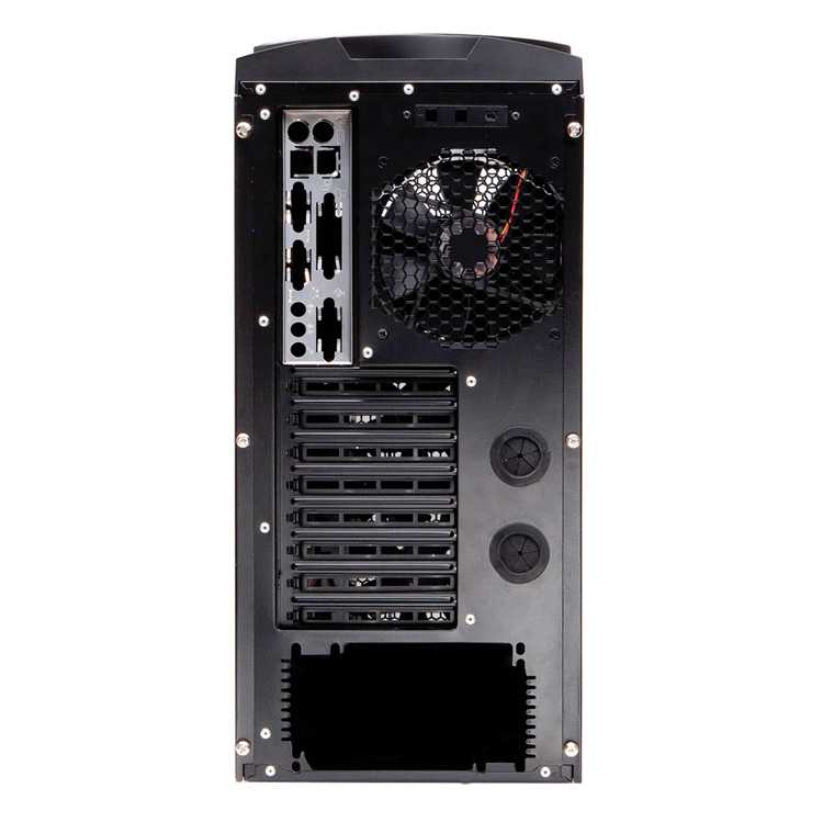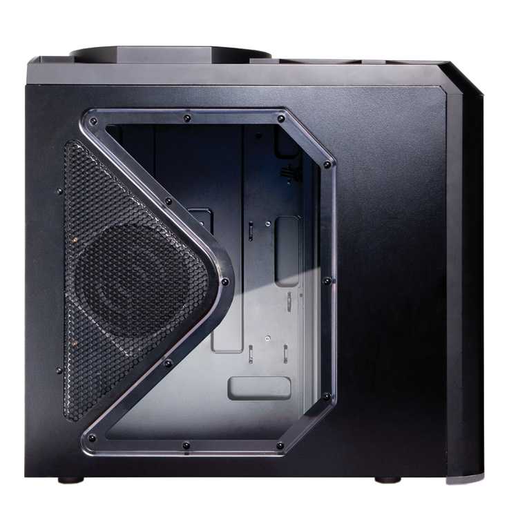 · Filtros lavables integrados · Interiores en color negro · Instalación de la fuente en la parte inferior · 8 ranuras de expansión para la compatibilidad con gráficas múltiples, incluyendo la tecnología SLI triple de nVIDIA · Ventana en el panel lateral · Posición de los puertos E/S de fácil acceso · Frontal perforado para un excelente flujo de aire · Panel lateral perforado