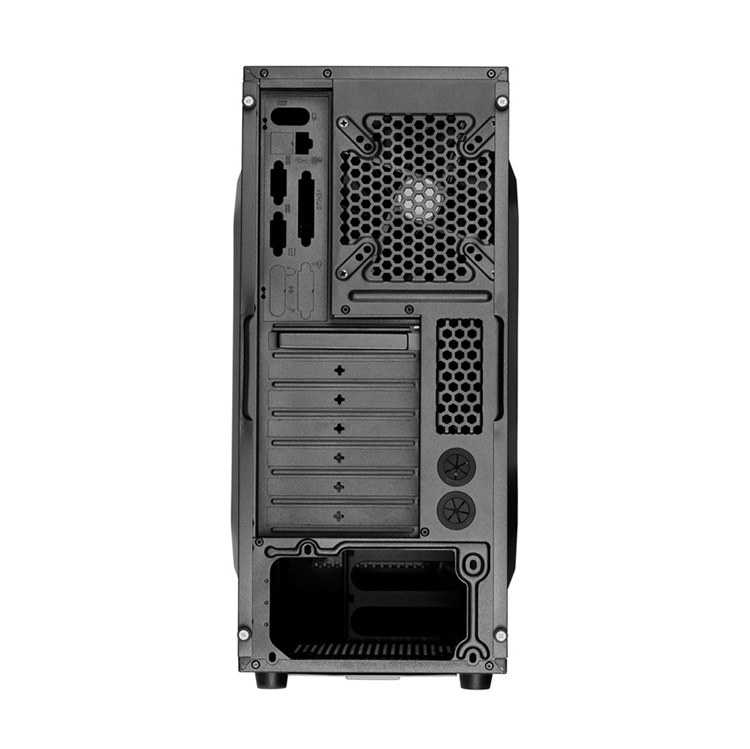 · Dos puertos USB 3.0 de alta velocidad · Instalación de unidades sin necesidad de usar herramientas · Compatible con gráficas de gran tamaño · Incluye un ventilador de 120 mm en la parte trasera y otro en la parte superior · Recorte en el soporte de la placa base para una fácil instalación de nuevos disipadores de CPU · Panel frontal de metal mesh para mejorar el flujo de aire · Puertos I/O montados en la parte superior para facilitar el acceso · Instalación de la fuente en la parte inferior · Interiores en color negro · Preparada para refrigeración líquida · Filtro de aire lavable en la parte inferior que reduce la acumulación de polvo dentro del sistema