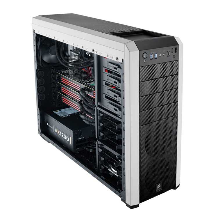 Diseñada para proporcionar un enorme espacio para tu equipo, Carbide 500R además cuenta con una extrema refrigeración gracias al ventilador de 200 mm que incluye para un extra de ventilación de la GPU, controles de velocidad para ventiladores y un sistema para instalar discos duros extraíble.
