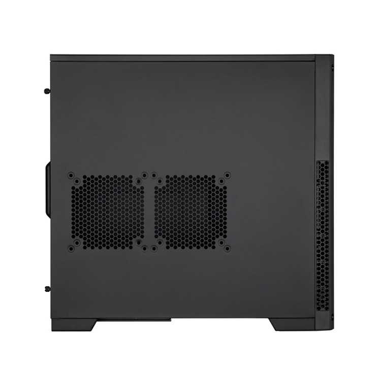Semitorre ATX con interiores en color negro. Incluye 2 ventiladores y 2 puertos de alta velocidad USB 2.0. Compatible con gráficas de grandes dimensiones.
