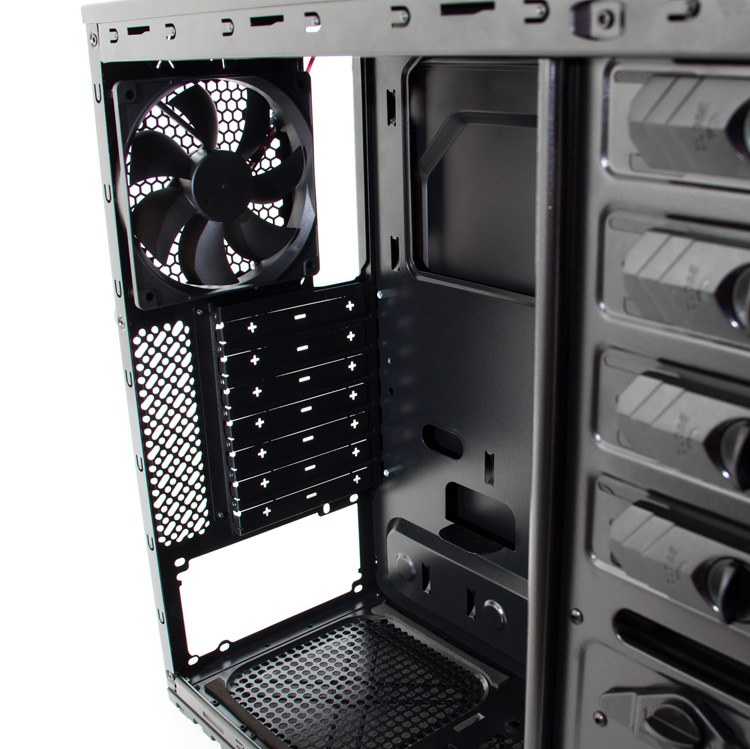 Semitorre ATX con capacidad para instalar hasta 6 ventiladores de 120 mm y metal mesh en la parte frontal. Gran capacidad para instalar discos duros y compatible con gráficas de gran tamaño.