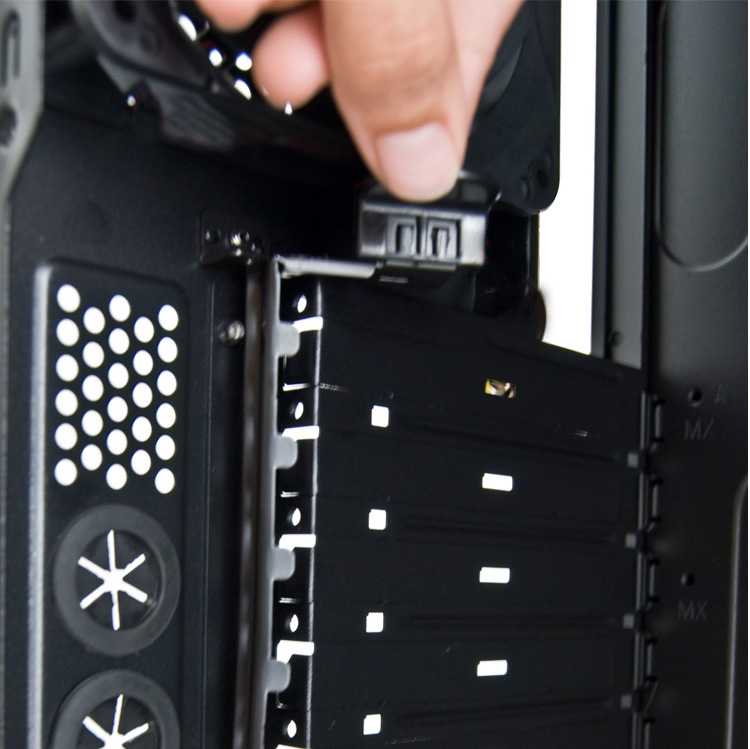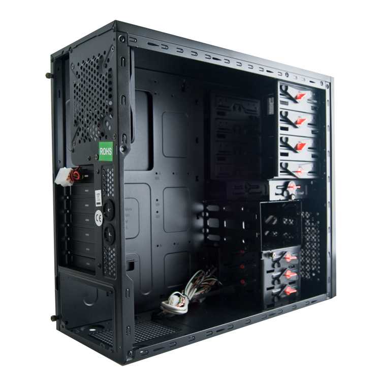 · Diseño elegante con LEDs rojos · Metal mesh en el panel frontal · Instalación de unidades sin tornillos · Instalación en Slots sin tornillos · Interiores en color negro · Instalación de la fuente en la parte inferior de la caja · Sistema para organizar los cables en el interior de la caja · Compatible con gráficas de gran tamaño