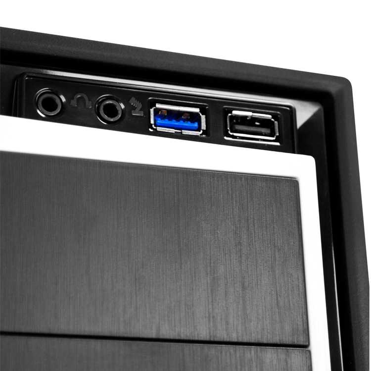 · Diseño de instalación de unidades sin necesidad de usar herramientas ni tornillos · Incluye puerto USB 3.0 para una máxima velocidad en la transferencia de datos · Excelente sistema de refrigeración incluido: un ventilador superior de 140 mm y otro trasero de 120 mm · Capacidad para instalar hasta 7 ventiladores · Instalación de la fuente en la parte inferior de la caja · Sistema para ordenar los cables en el interior · Panel frontal de acabado en aluminio · Interior en color negro · Dimensiones máximas de VGA: · 230 mm con disco duro instalado · 330 mm sin disco duro · Dimensiones máximas de cooler para CPU: · 160 mm