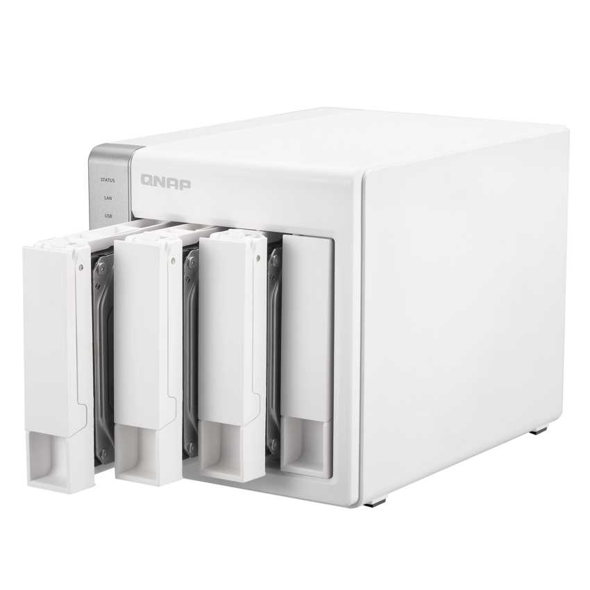 Descripción QNAP TS-431+. Capacidad total de almacenamiento instalada: 0 GB, Tipos de unidades de almacenamiento admitidas: Unidad de disco duro, SSD, Interfaz de unidad de almacenamiento: Serial ATA II, Serial ATA III. Familia de procesador: Annapurna Labs, Modelo del procesador: AL212, Frecuencia del procesador: 1,4 GHz. RAM interna: 1 GB, Tipo de memoria RAM interna: DDR3, Memoria Flash: 512 MB. Ethernet LAN, velocidad de transferencia de datos: 10,100,1000 Mbit/s. Tipo de chasis: Torre, Tipo de enfriamiento: Activo, Color del producto: Color blanco