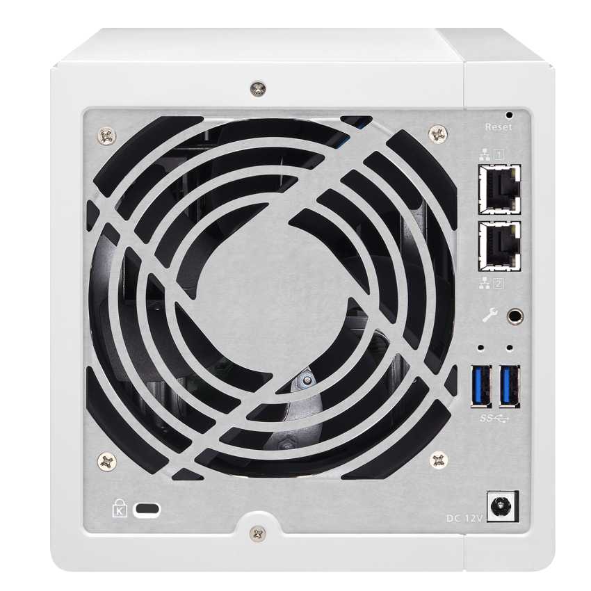 Especificaciones Tipos de unidades de almacenamiento admitidas: Unidad de disco duro, SSD Número de unidades de almacenamiento compatibles: 4 Interfaz de unidad de almacenamiento: Serial ATA II, Serial ATA III Tamaño de la unidad de almacenamiento: 2.5/3.5" Compatibilidad con RAID: Si Niveles RAID: 1, 5, 6, 10, JBOD Receptáculos de unidades hot-swap: Si Sistemas de archivos soportados: ext3, ext4, FAT32, HFS+, NTFS Familia de procesador: Annapurna Labs Modelo del procesador: AL212 Frecuencia del procesador: 1,4 GHz Número de núcleos de procesador: 2 RAM interna: 1 GB Tipo de memoria RAM interna: DDR3 Memoria Flash: 512 MB Ethernet: Si Ethernet LAN, velocidad de transferencia de datos: 10,100,1000 Mbit/s Wifi: No DHCP, cliente: Si DHCP, servidor: Si Jumbo Frames, soporte: Si Soporte iSCSI: Si Conexión de redes: Si Ethernet LAN (RJ-45) cantidad de puertos: 2 Puerto USB: Si Cantidad de puertos tipo A USB 3.0 (3.1 Gen 1): 3 Tipo de chasis: Torre Tipo de enfriamiento: Activo Color del producto: Color blanco Número de ventiladores: 1 Diámetro de ventilador: 12 cm Bloqueo del receptáculo de la unidad: Si Indicadores LED: Si Ranura para cable de seguridad: Si Tipo de ranura de bloqueo del cable: Kensington Tipo: NAS Clase del dispositivo: Home & Home Office Función de copia de seguridad: Si Opciones de copia de seguridad: Cloud, iSCSI LUN Vibrador: Si Soporte multilinguaje: Si Número de usuarios: 4096 usuario(s) Sistema operativo instalado: QNAP Turbo System Versión de sistema operativo: 4.1 Algoritmos de seguridad soportados: 256-bit AES Lista de Control de Acceso (ACL): Si Administación basada en web: Si Botón de restaurar: Si Interruptor de encendido/apagado integrado: Si Sistema operativo Windows soportado: Si Sistema operativo Linux soportado: Si Sistema operativo MAC soportado: Si Sistema operativo de servidor soportado: Windows Server 2003 Otros sistemas operativos soportados: Android, iOS Ubicación de fuente de alimentación: Externo Capacidad de la fuente de alimentación (PSU): 90 W Consumo energético: 26,15 W Consumo energético (en suspensión): 11,89 W Voltaje de entrada AC: 100-240 V Voltaje del ventilador: 12 V Ancho: 18 cm Profundidad: 23,5 cm Altura: 17,7 cm Peso: 3 kg Peso del paquete: 4,3 kg Adaptador de energía externo: Si Intervalo de temperatura operativa: 0 - 40 °C Intervalo de humedad relativa para funcionamiento: 5 - 95% Certificación: FCC, CE, BSMI, VCCI, C-TICK