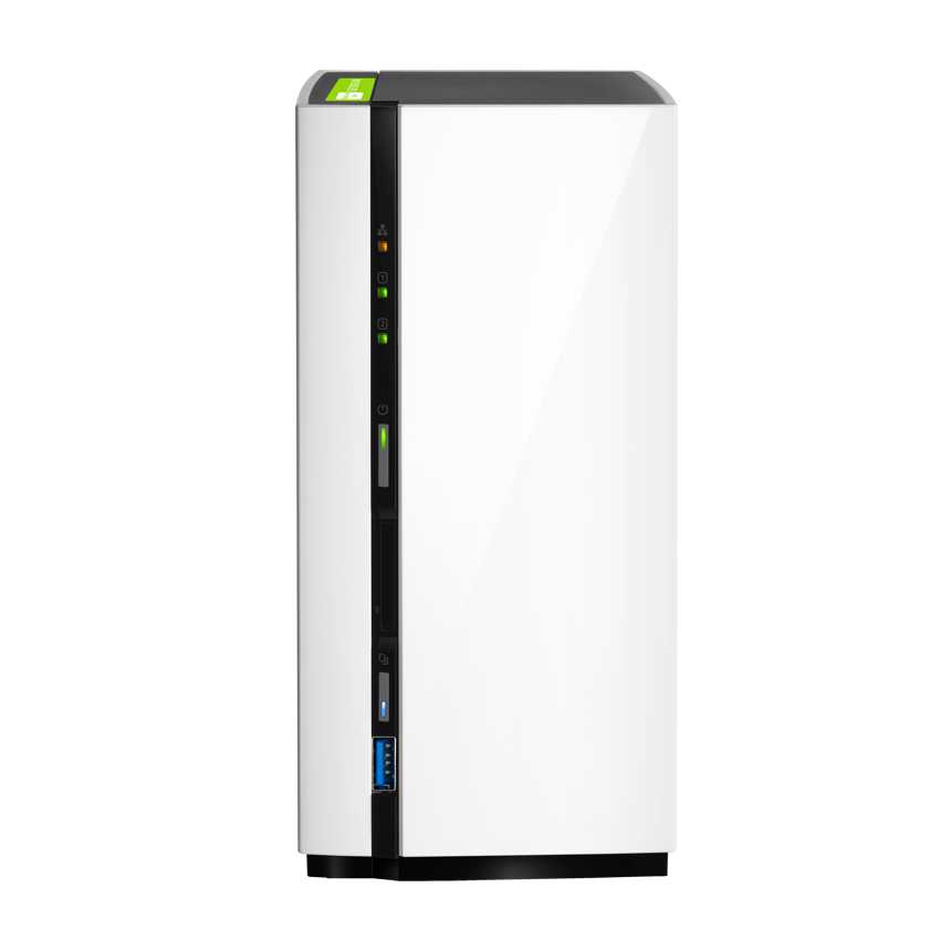 DescripciónEl TS-228 es un centro de almacenamiento en red ligero, fácil de usar y con múltiples funciones para poder realizar copias de seguridad, sincronizar, acceder de forma remota y disfrutar del entretenimiento en casa. Es un NAS de bajo consumo y rentable, ideal para que los usuarios domésticos comiencen a crear su propia nube personal y estén conectados a sus archivos con un control total. Compruebe cómo el TS-228 puede hacer su vida digital más fácil, más sencilla y más cómoda. - Organice su contenido y las copias de seguridad en una ubicación centralizada - Sincronice archivos entre ordenadores, tablets y dispositivos móviles - Recopile, disfrute y comparta sus grandes colecciones de música, vídeos y fotos - Reproduzca su biblioteca multimedia a través de DLNA a otros dispositivos y a su televisor - Acceda, gestione y disfrute de todos sus archivos con sus tablets y smartphones - Disfrute del App Center con cientos aplicaciones a instalar bajo demanda para aumentar la diversidad de aplicacionesEspecificacionesUnidades de almacenamiento instaladas: NoTipo de unidades de almacenamiento instaladas: NoTipos de unidades de almacenamiento admitidas: Unidad de disco duroNúmero de unidades de almacenamiento compatibles: 2Interfaz de unidad de almacenamiento: SATATamaño de la unidad de almacenamiento: 3.5"Compatibilidad con RAID: SiNiveles RAID: 0, 1, JBODSistemas de archivos soportados: FAT32, HFS+, NTFS, ext3, ext4Frecuencia del procesador: 1,1 GHzNúmero de núcleos de procesador: 2RAM interna: 1 GBTipo de memoria RAM interna: DDR3Memoria Flash: 4096 MBEthernet: SiEthernet LAN, velocidad de transferencia de datos: 10,100,1000 Mbit/sWifi: NoDHCP, cliente: SiDHCP, servidor: SiProtocolos de red compatibles: CIFS/SMB (3.0), AFP (v3.3), NFS(v3), FTP, FTPS, SFTP, TFTP, HTTP(S), Telnet, SSH, SNMP, SMTP, SMSCEthernet LAN (RJ-45) cantidad de puertos: 1Puerto USB: SiCantidad de puertos USB 2.0: 1Cantidad de puertos tipo A USB 3.0 (3.1 Gen 1): 1Tipo de chasis: Mini TowerColor del producto: Negro, Color blancoIndicadores LED: Unidad de disco duro, LAN, Estado, USBTipo: NASClase del dispositivo: Home & Home OfficeFunción de copia de seguridad: SiOpciones de copia de seguridad: CloudVibrador: SiSoporte multilinguaje: SiSistema operativo instalado: QNAP Turbo SystemVersión de sistema operativo: 4.2Lista de Control de Acceso (ACL): SiBotón de restaurar: SiInterruptor de encendido/apagado integrado: SiSoporte S.M.A.R.T.: SiSistema operativo Windows soportado: SiSistema operativo Linux soportado: SiSistema operativo MAC soportado: SiSistema operativo de servidor soportado: Windows Server 2003Ubicación de fuente de alimentación: ExternoCapacidad de la fuente de alimentación (PSU): 60 WNúmero de fuentes de alimentación: 1Voltaje de entrada AC: 100-240 VAncho: 9 cmProfundidad: 12,5 cmAltura: 18,8 cmAdaptador de energía externo: SiCables incluidos: Corriente alterna, LAN (RJ-45)Guía de instalación rápida: SiIntervalo de temperatura operativa: 0 - 40 °CIntervalo de humedad relativa para funcionamiento: 5 - 95%Cantidad por palé: 1 pieza(s)