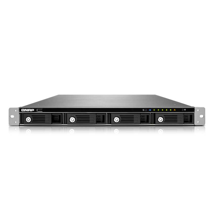 Especificaciones Unidades de almacenamiento instaladas: No Tipos de unidades de almacenamiento admitidas: Unidad de disco duro, SSD Número de unidades de almacenamiento compatibles: 4 Interfaz de unidad de almacenamiento: Serial ATA II, Serial ATA III Tamaño de la unidad de almacenamiento: 2.5/3.5" Compatibilidad con RAID: Si Niveles RAID: 0, 1, 5, 6, 10 Receptáculos de unidades hot-swap: Si Sistemas de archivos soportados: ext3, ext4, FAT32, HFS+ Familia de procesador: Intel® Celeron® Frecuencia del procesador: 2 GHz Número de núcleos de procesador: 4 RAM interna: 4 GB Tipo de memoria RAM interna: DDR3L RAM máximo soportado: 8 GB Ranuras de memoria: 2 Memoria Flash: 512 MB Ethernet: Si Ethernet LAN, velocidad de transferencia de datos: 10,100,1000 Mbit/s DHCP, cliente: Si DHCP, servidor: Si Jumbo Frames, soporte: Si Soporte iSCSI: Si Conexión de redes: Si Protocolos de red compatibles: CIFS/SMB, AFP (v3.3), NFS(v3), FTP, FTPS, SFTP, TFTP, HTTP(S), Telnet, SSH, iSCSI, SNMP, SMTP, and SMSC Ethernet LAN (RJ-45) cantidad de puertos: 4 Puerto USB: Si Cantidad de puertos tipo A USB 3.0 (3.1 Gen 1): 5 Número de puertos HDMI: 1 Tipo de chasis: Bastidor (1U) Tipo de enfriamiento: Activo Color del producto: Negro Número de ventiladores: 2 Diámetro de ventilador: 4 cm Bloqueo del receptáculo de la unidad: Si Indicadores LED: Si Tipo: NAS Función de copia de seguridad: Si Vibrador: Si Soporte multilinguaje: Si Sistema operativo instalado: QNAP Turbo System Versión de sistema operativo: 4.1 Algoritmos de seguridad soportados: 256-bit AES, HTTPS, SSH, SSL/TLS Lista de Control de Acceso (ACL): Si Botón de restaurar: Si Interruptor de encendido/apagado integrado: Si Sistema operativo Windows soportado: Si Sistema operativo Linux soportado: Si Sistema operativo MAC soportado: Si Capacidad de la fuente de alimentación (PSU): 250 W Consumo energético: 39,86 W Voltaje de entrada AC: 100-240 V Frecuencia de entrada AC: 50/60 Hz Ancho: 43,9 cm Profundidad: 49,9 cm Altura: 4,4 cm Peso: 7,63 kg Peso del paquete: 11,6 kg Cables incluidos: Corriente alterna, LAN (RJ-45) Intervalo de temperatura operativa: 0 - 40 °C Intervalo de humedad relativa para funcionamiento: 5 - 95%
