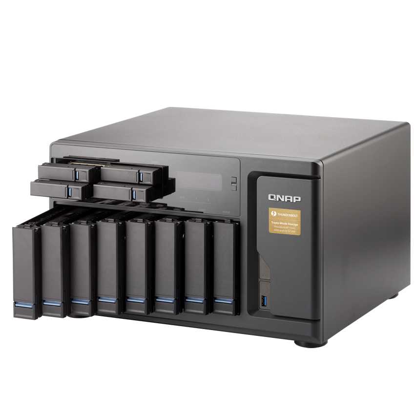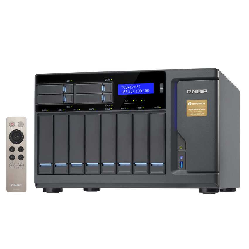 - Ranuras M.2 SATA 6Gb/s & ranuras SSD de 2.5? integradas - Tecnología Qtier y caché SSD permiten una eficacia de almacenamiento optimizada 24/7 - La aplicación Network & Virtual Switch ayuda a distribuir el tráfico de red, y redirige el ancho de banda dedicado para diversas aplicaciones - Salida Triple HDMI (incluyendo una HDMI 2.0) para una reproducción de vídeo 4K fluida - Thunderbolt? 2 (20Gbps) y red dual de 10GbE para la edición de video sobre la marcha e intercambio rápido - 4 combinaciones disponibles con Mac/PC y JBOD para agregar, compartir y ampliar de forma flexible - Escalable hasta los 448 TB con los chasis de ampliación de almacenamiento Thunderbolt? 2 TX-800P/ TX-500P - El JBOD Virtual (VJBOD) permite utilizar el NAS de QNAP para ampliar la capacidad de almacenamiento del TVS-1282T - Es compatible con la gestión del servidor remoto unificado QRM+, tecnología QvPC, aplicaciones de máquina virtual y contenedores, y almacenamiento para la virtualización