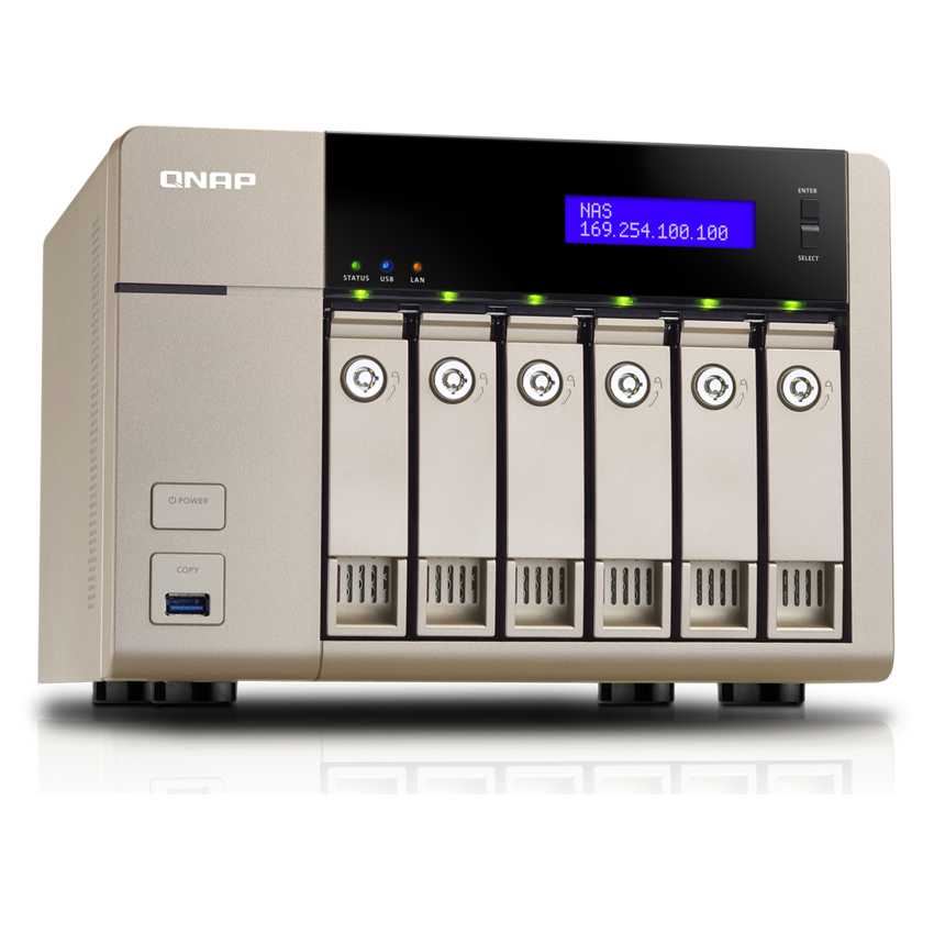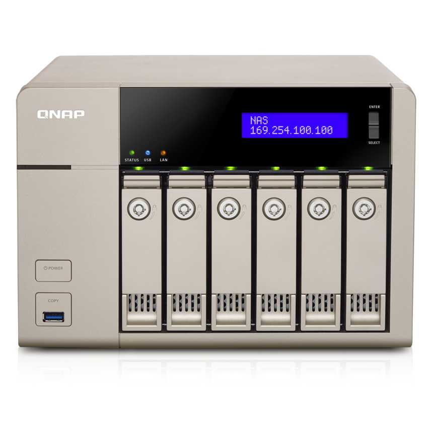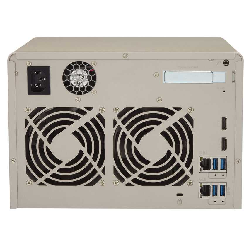 Especificaciones Unidades de almacenamiento instaladas: No Tipos de unidades de almacenamiento admitidas: Unidad de disco duro, SSD Número de unidades de almacenamiento compatibles: 6 Interfaz de unidad de almacenamiento: Serial ATA II, Serial ATA III Tamaño de la unidad de almacenamiento: 2.5/3.5" Compatibilidad con RAID: Si Niveles RAID: 0, 1, 5, 6, 10 Receptáculos de unidades hot-swap: Si Sistemas de archivos soportados: ext3, ext4, FAT32, HFS+, NTFS Frecuencia del procesador: 2,4 GHz Número de núcleos de procesador: 4 RAM interna: 4 GB Tipo de memoria RAM interna: DDR3L RAM máximo soportado: 16 GB Ranuras de memoria: 2 Memoria Flash: 512 MB Ethernet: Si Ethernet LAN, velocidad de transferencia de datos: 10,100,1000 Mbit/s DHCP, cliente: Si DHCP, servidor: Si Jumbo Frames, soporte: Si Soporte iSCSI: Si Conexión de redes: Si Protocolos de red compatibles: CIFS/SMB, AFP (v3.3), NFS(v3), FTP, FTPS, SFTP, TFTP, HTTP(S), Telnet, SSH, iSCSI, SNMP, SMTP, and SMSC Ethernet LAN (RJ-45) cantidad de puertos: 2 Puerto USB: Si USB 3.0 (3.1 Gen 1) Type-A ports quantity: 5 Número de puertos HDMI: 2 Tipo de chasis: Torre Color del producto: Oro Tipo de enfriamiento: Activo Número de ventiladores: 2 Diámetro de ventilador: 12 cm Indicadores LED: Si Pantalla incorporada: Si Tipo de visualizador: LCD Ranura para cable de seguridad: Si Tipo de ranura de bloqueo del cable: Kensington Tipo: NAS Función de copia de seguridad: Si Vibrador: Si Soporte multilinguaje: Si Sistema operativo instalado: QNAP Turbo System Versión de sistema operativo: 4.1 Administación basada en web: Si Botón de restaurar: Si Interruptor de encendido/apagado integrado: Si Sistema operativo Windows soportado: Si Sistema operativo Linux soportado: Si Sistema operativo MAC soportado: Si Capacidad de la fuente de alimentación (PSU): 250 W Consumo energético: 58,81 W Consumo energético (en suspensión): 2,19 W Voltaje de entrada AC: 110-240 V Frecuencia de entrada AC: 50/60 Hz Ancho: 26 cm Profundidad: 23,6 cm Altura: 18,5 cm Peso: 6,18 kg Peso del paquete: 6,9 kg Cables incluidos: Corriente alterna, LAN (RJ-45) Intervalo de temperatura operativa: 0 - 40 °C Intervalo de humedad relativa para funcionamiento: 5 - 95%